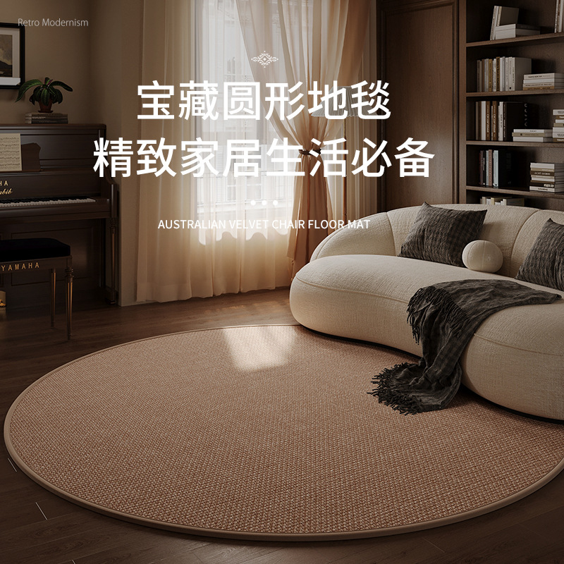 リビング円形絨毯モダンシンプル純色高級感レトロソファ茶何絨毯ベランダ寝室ベッドサイド絨毯