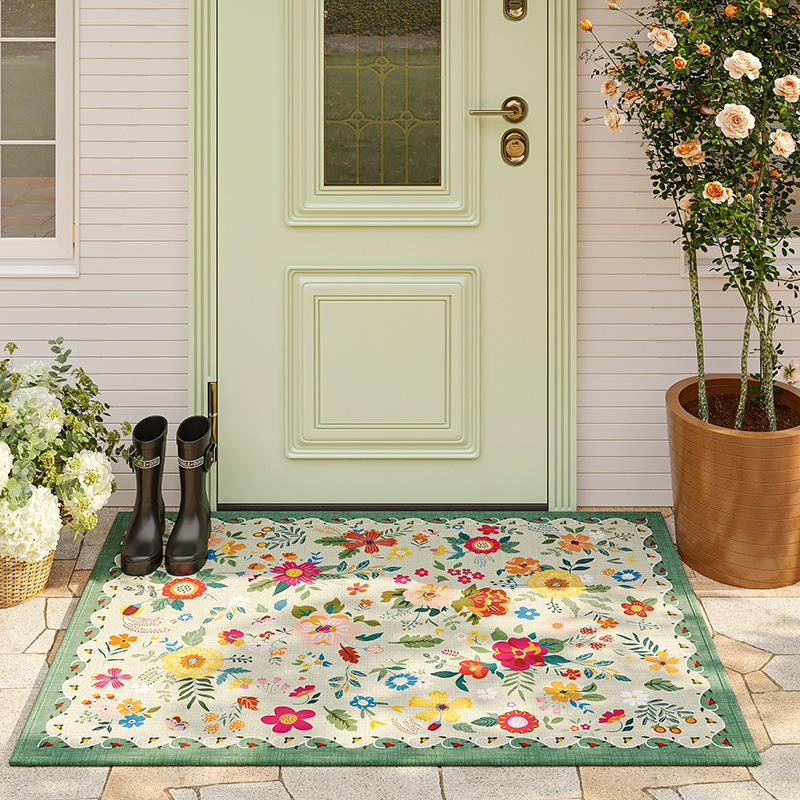 碎花仿亚麻纹理编织柔软防滑吸水卫生间浴室家用淋浴地垫脚垫