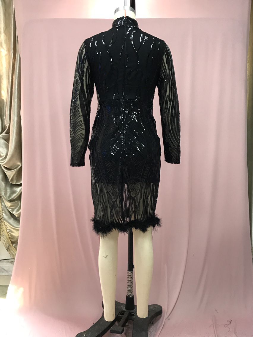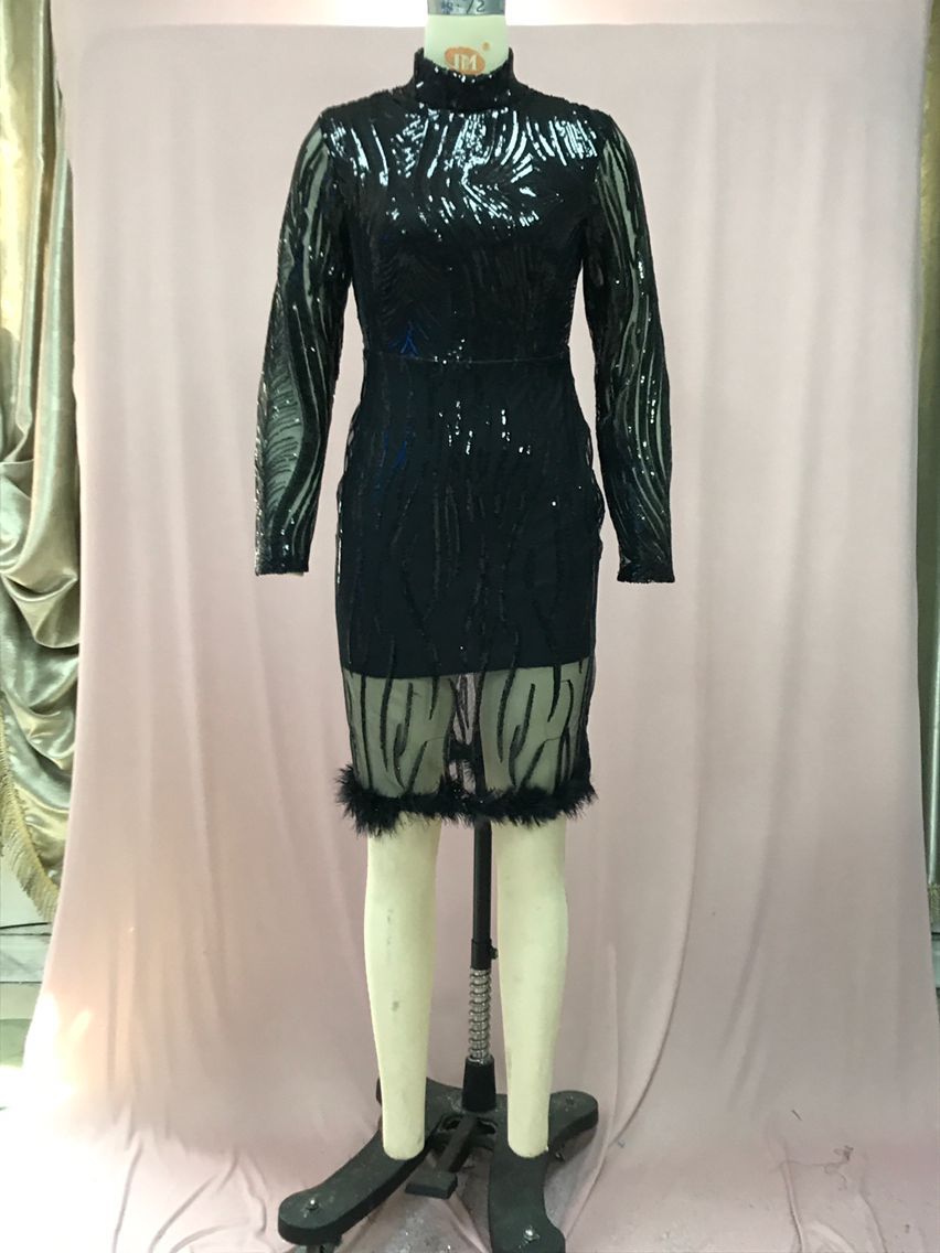 欧米の国境を越えた対外貿易の新型の直接販売の純色のファッションのスパンコールの丸首のゆったりした腰の半袖のワンピースの宴会のドレス