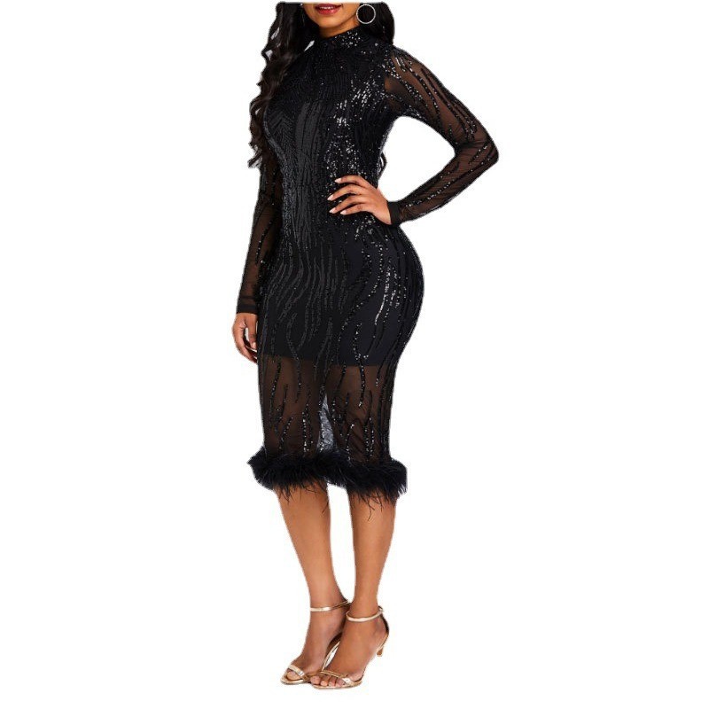 2024春の新型クロスボーダー女装アマゾンワンピース長袖高襟中ロングスカート