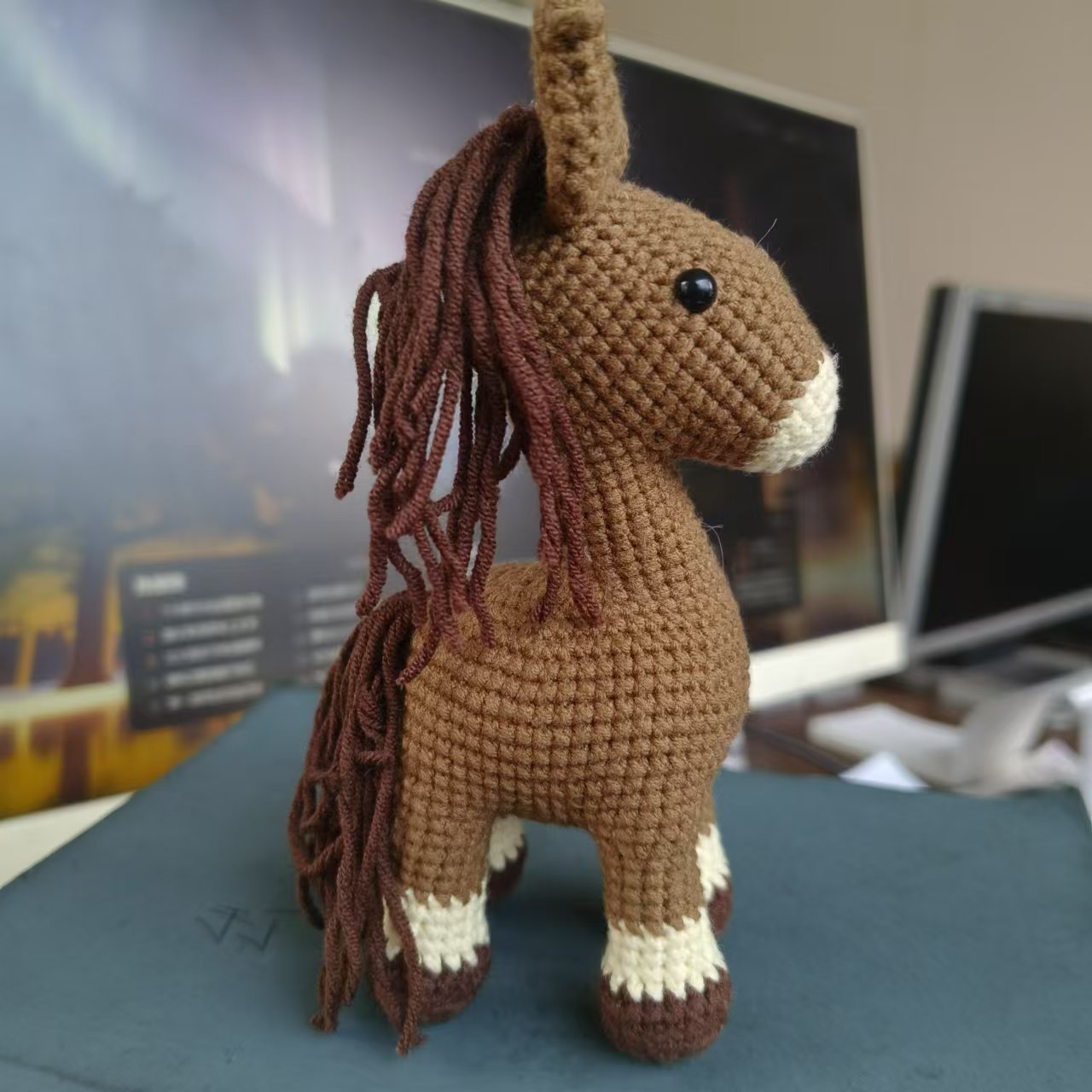 完成品の手作りの毛糸のかぎ針編みの馬の人形のキーホルダーの置物の小さい毛のロバの創意の贈り物の手作り