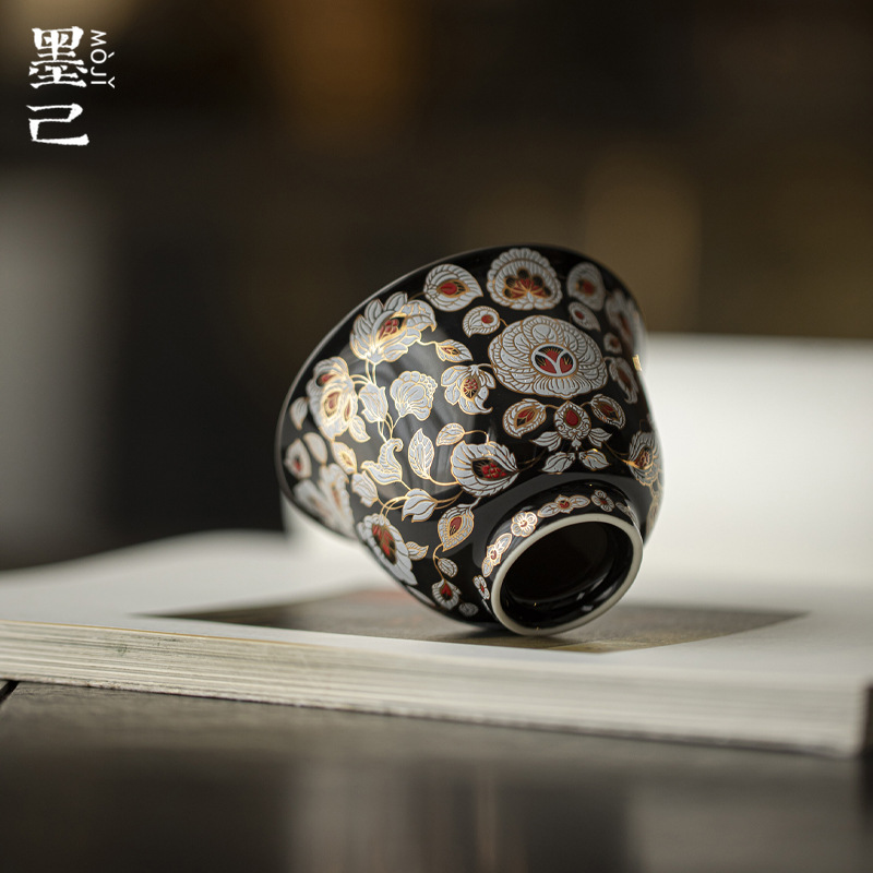 墨己盛唐夜宴陶磁器主人杯カンフー茶器金銀品茗杯大サイズ家庭用お茶杯満花