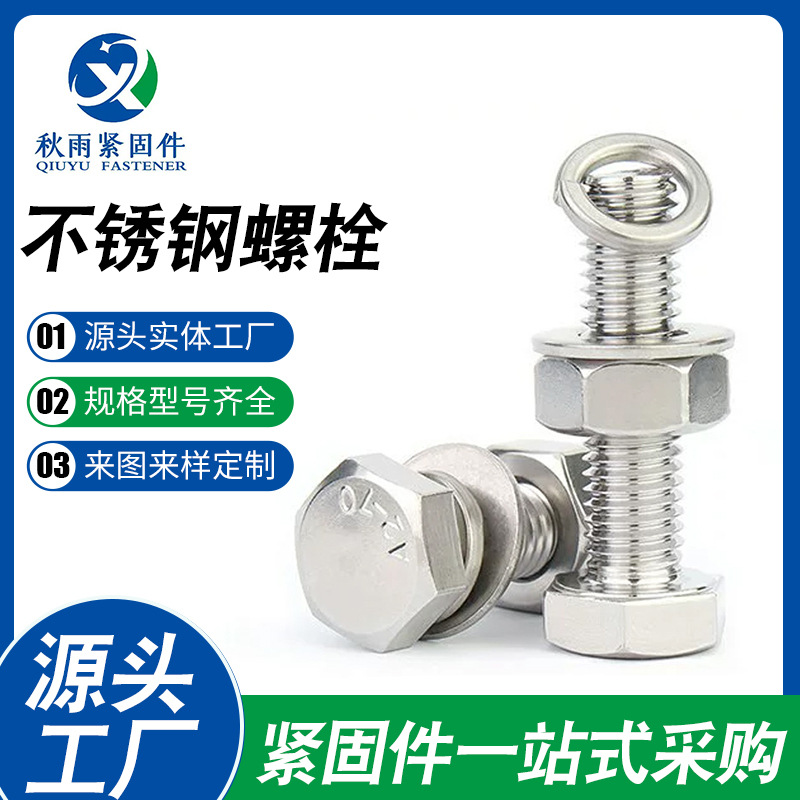 不锈钢外六角螺丝组合套装平垫弹垫螺母DIN933全螺纹六角螺栓304