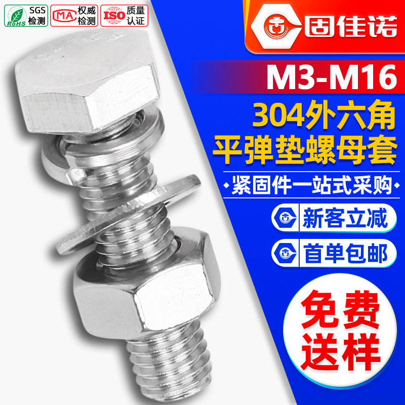 304ステンレス外六角平弾マット付き三組み合わせボルト六角頭平弾マットセットねじセット