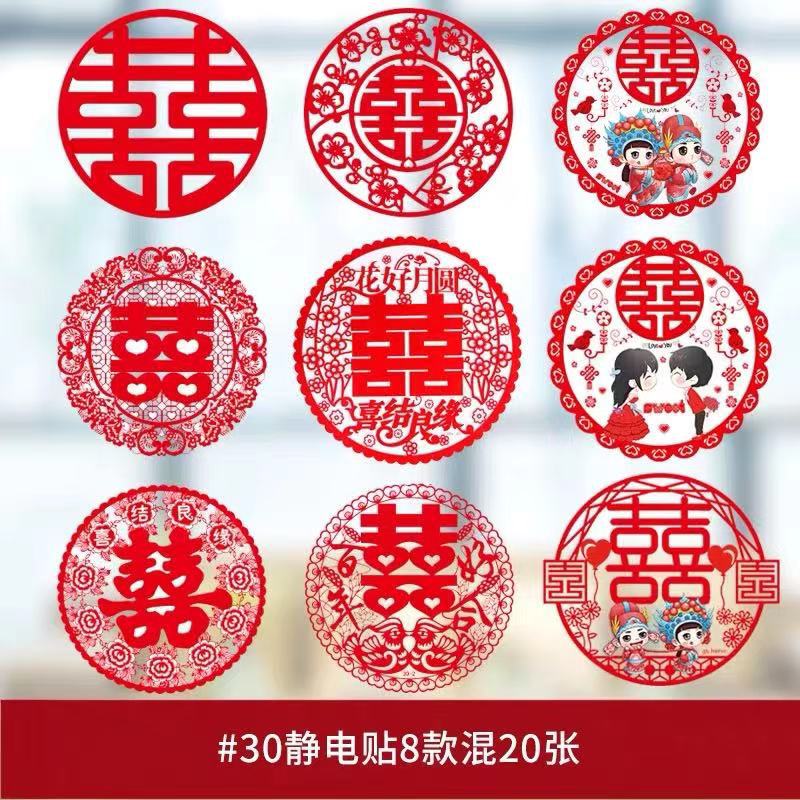卸売り結婚静電気喜字結婚室装飾ガラス喜字シール結婚用品結婚準備配置喜字窓花