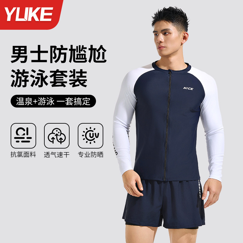 メンズ水着長袖日焼け止め速乾水着サーフィン服通気性スプリット大きいサイズ水泳パンツセットウェットスーツ水泳