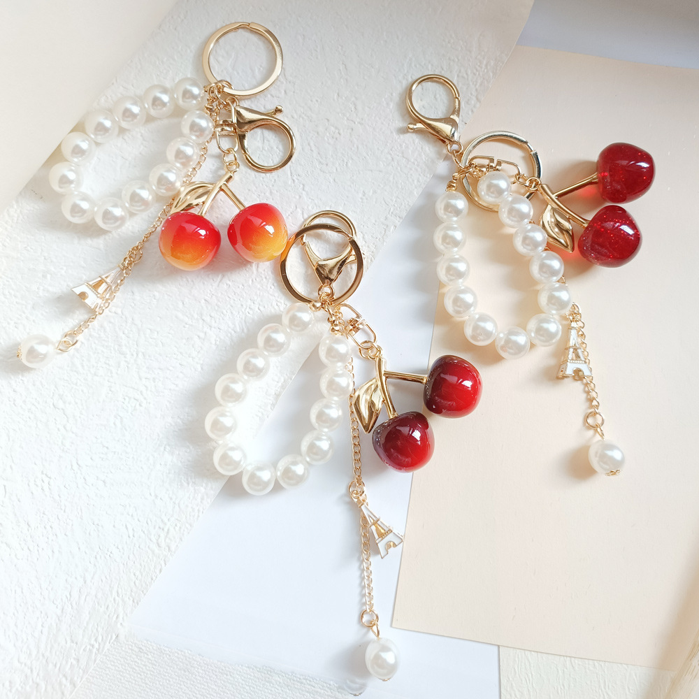 珍珠串樱桃钥匙扣跨境时尚亚克力车厘子汽车钥匙链高级感包挂件