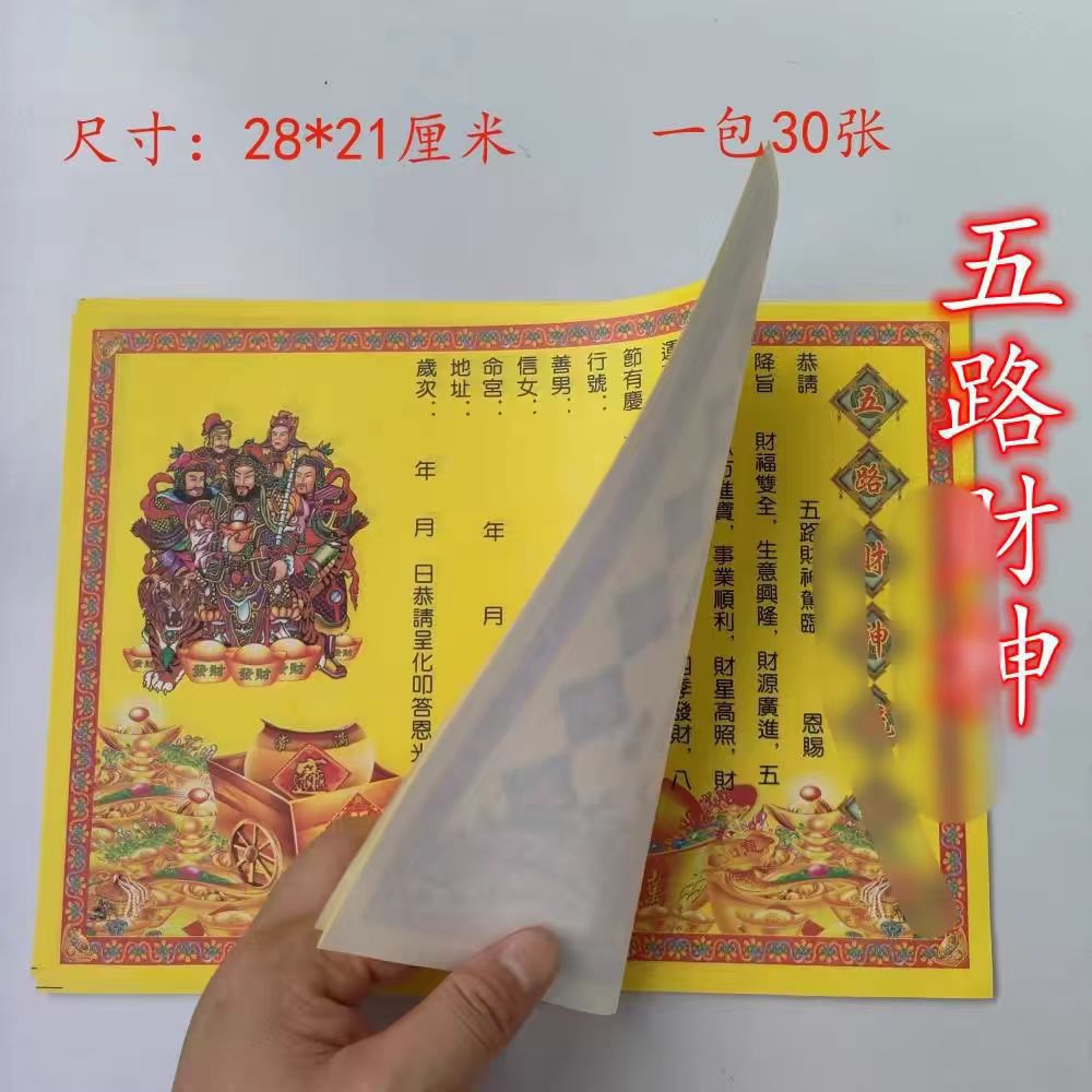 五路一包30张 彩印表文黄表纸大全包邮300多种联系客服看目录