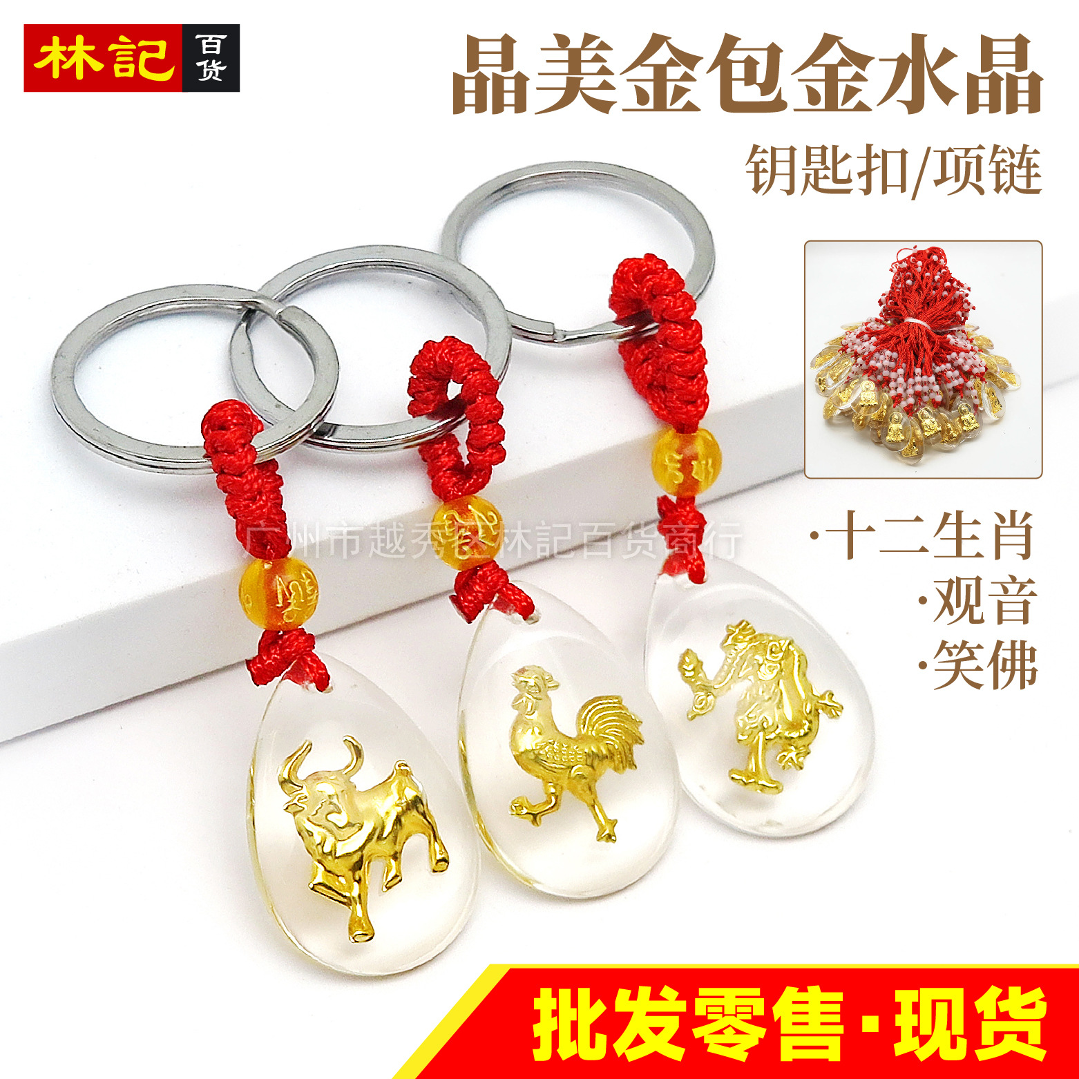 クリスタルゴールドクリスタルゴールドペンダント観音仏12星座ゴールドペンダント赤いロープネックレス小物