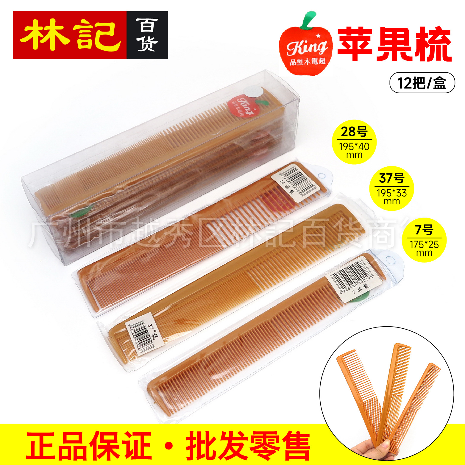 りんご櫛7 #37 #28 # 疎歯密歯2種歯幅長方形美髪櫛上質プラスチック櫛