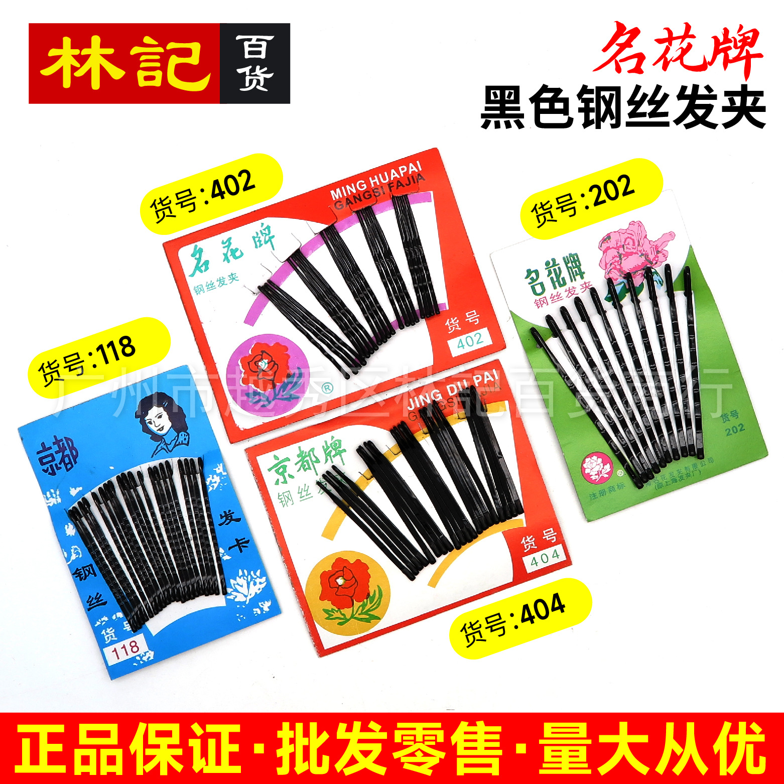 有名ブランドのヘアピン、ワンワードクリップ、黒の平クリップ、波型スチールワイヤーヘアピン、メタルヘアピン、露店2元商品