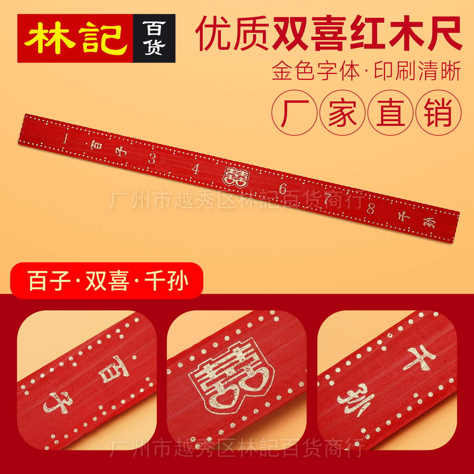 結婚祝いの紅木尺百子千孫双喜木尺竹尺1尺直尺測定服尺結婚祝い用品
