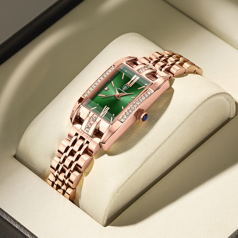 スイスブランド防水女性腕時計角型小緑時計石英腕時計の震え音が爆発的に販売された
