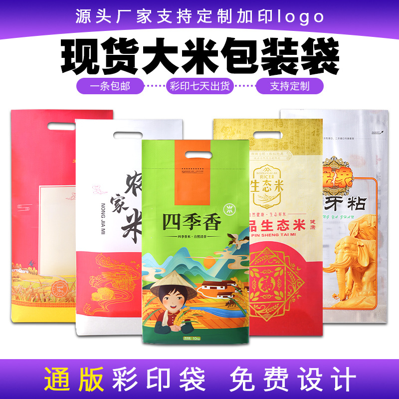 メーカーは米袋5斤、10斤、10kg袋入り米袋、カラー印刷ハンドバッグ包装、カラー印刷米包装を供給しています。