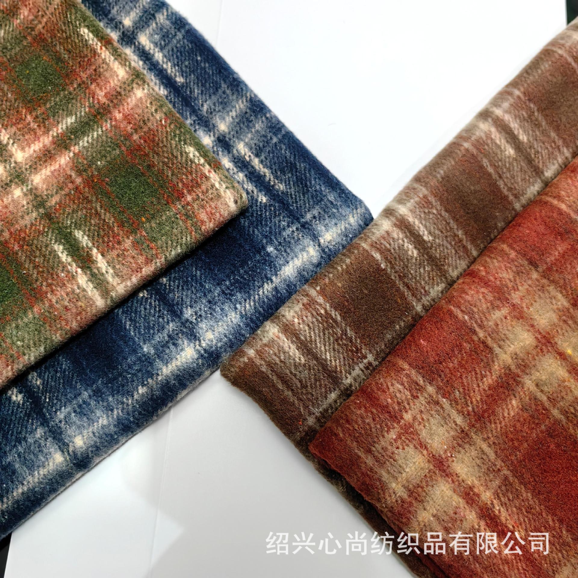 粗纺呢绒 现货磨毛格子 大衣服装/鞋帽/箱包面料布料 绍兴货源