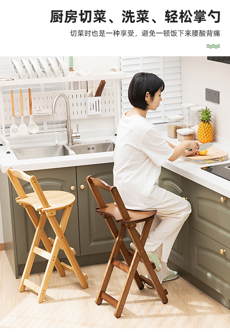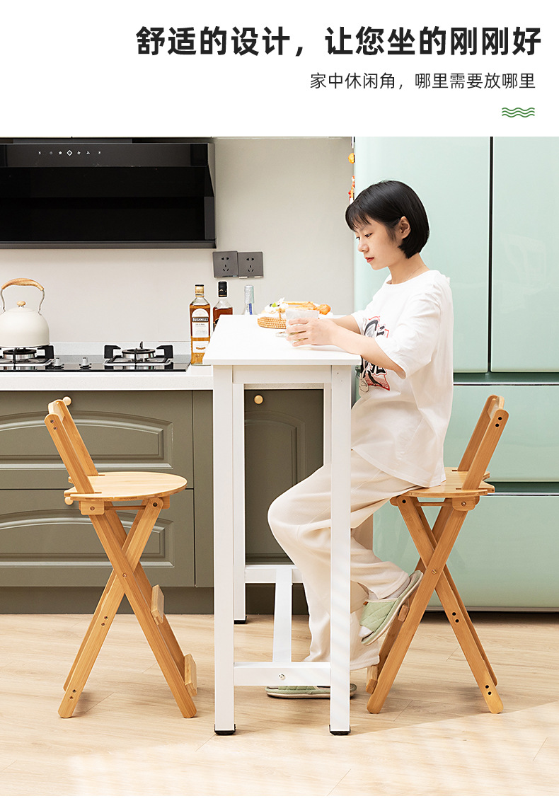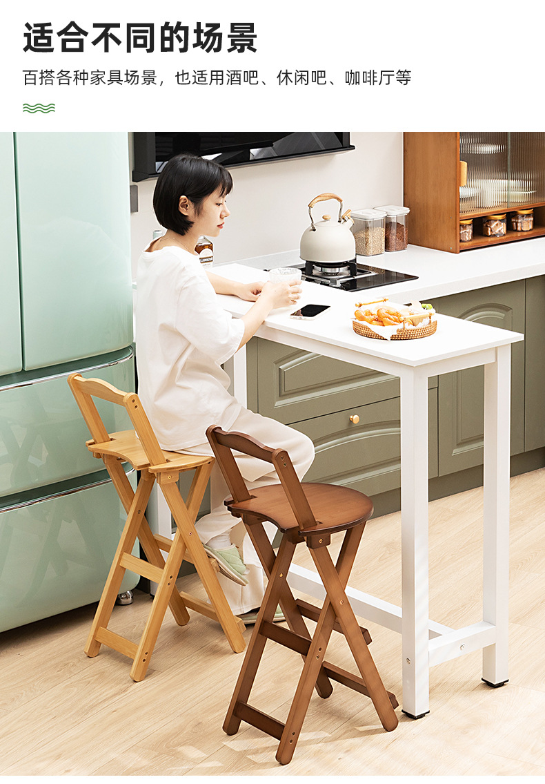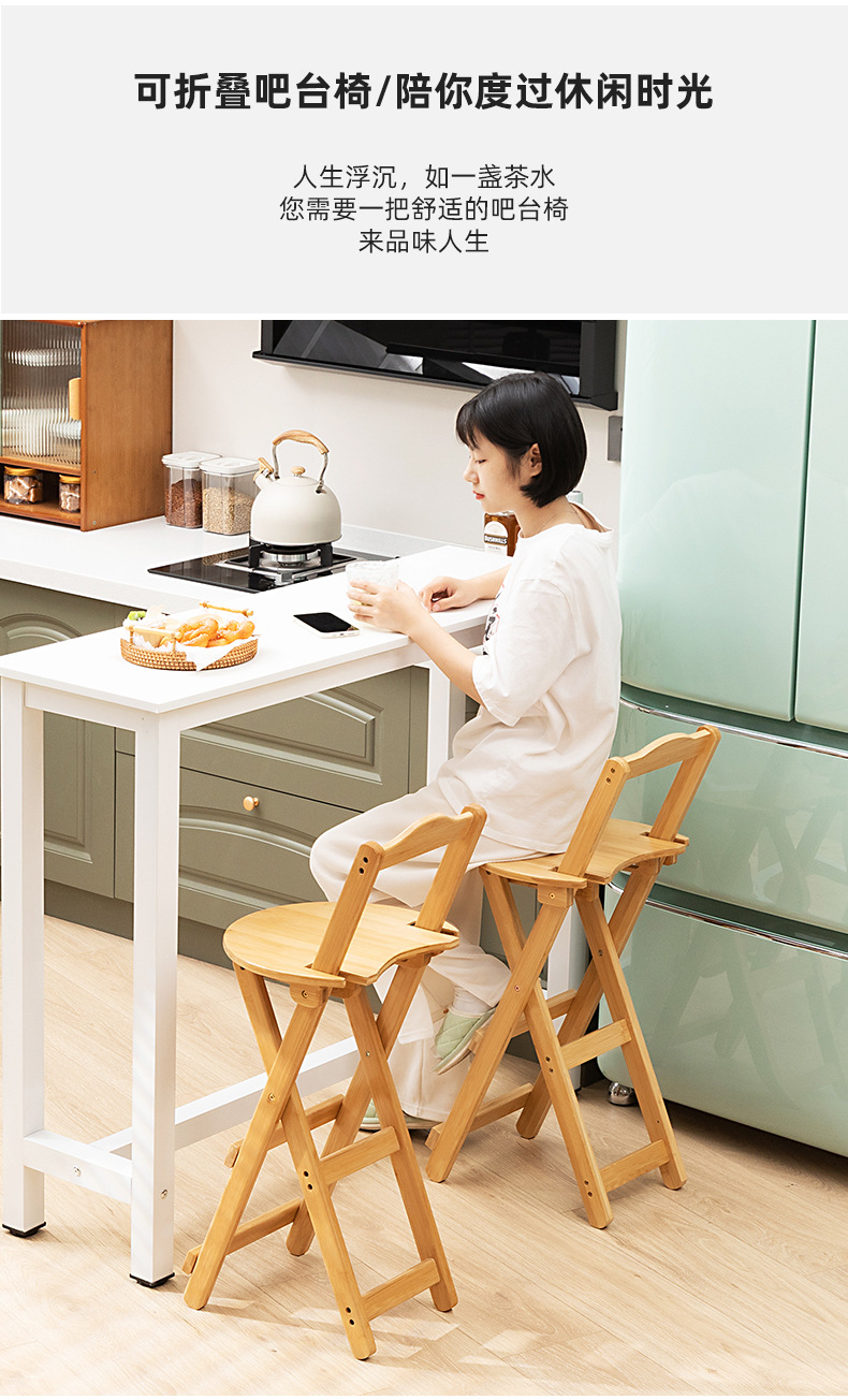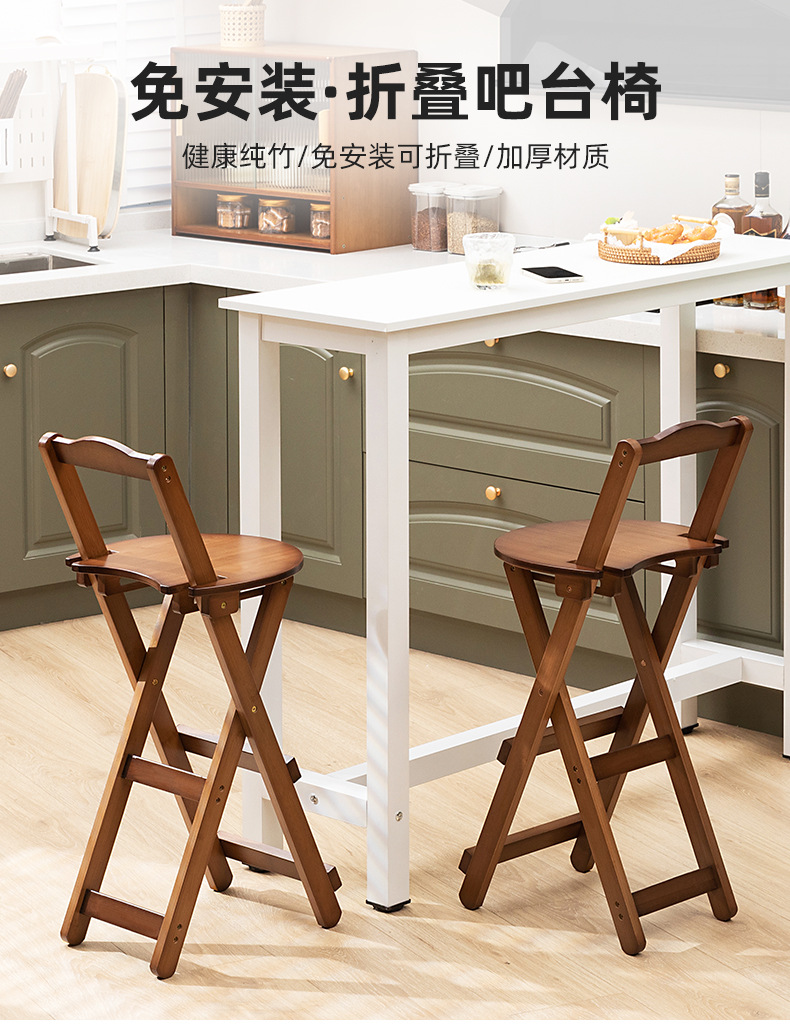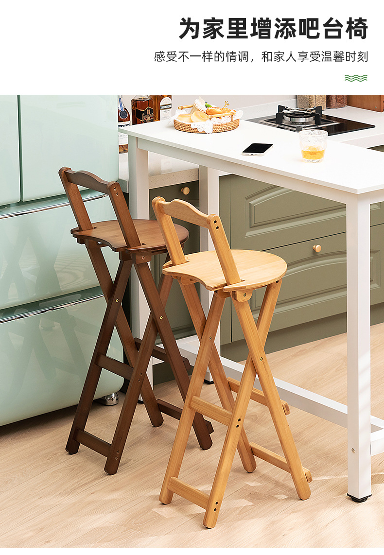 家庭用折り畳み可能な現代シンプルなカウンター椅子高足椅子実木バー椅子レストラン日本式楠竹背もたれ椅子
