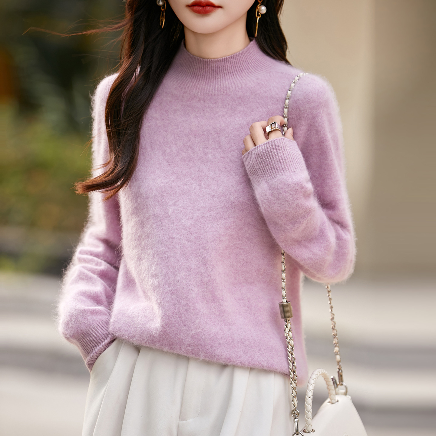 软糯轻奢半高领拉毛羊毛衫女针织打底拉绒毛衣宽松羊毛秋冬新款