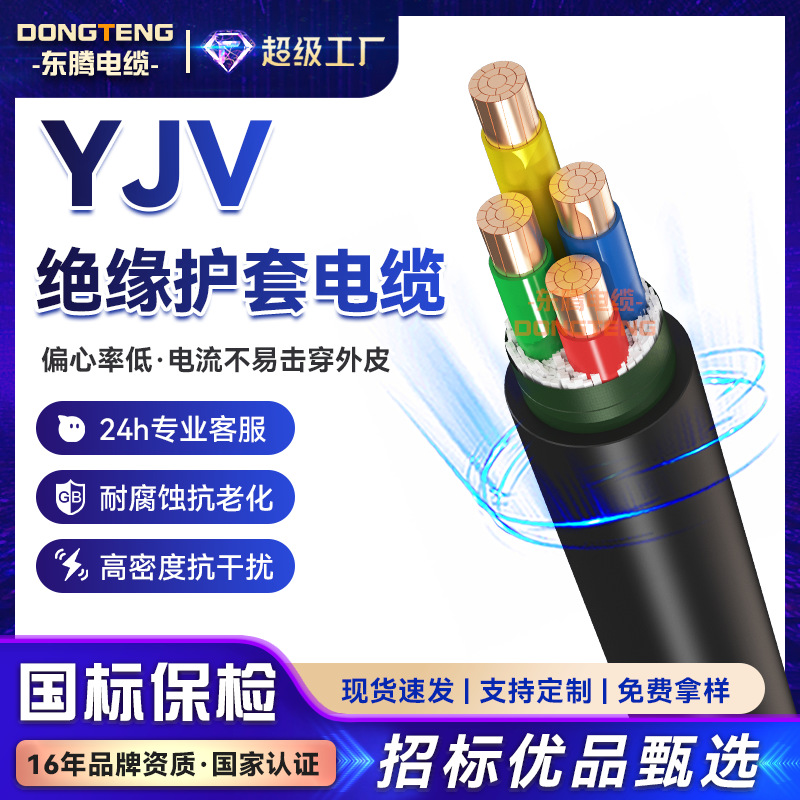 Dongteng 無酸素銅コア YJV ケーブル 4 芯 1.5 2.5 4 6 平方メートル屋外家庭用硬銅線