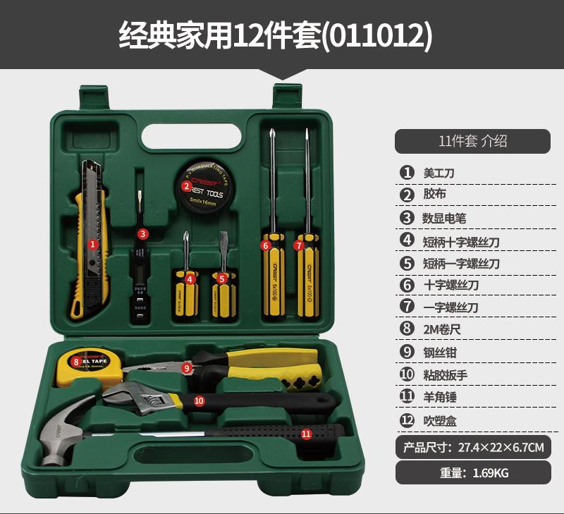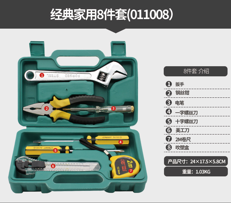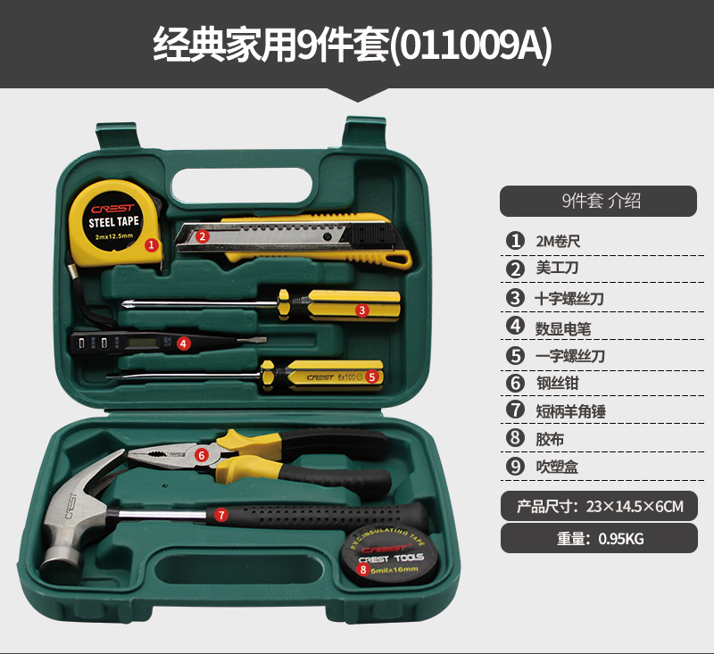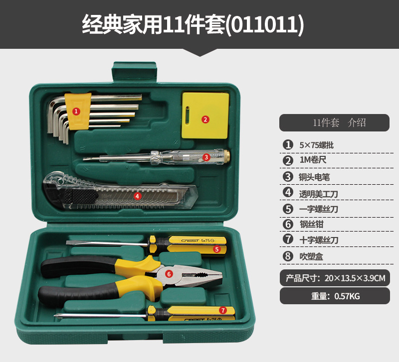 瑞徳11点セット小型家庭用金属工具箱セット車載ポイント銀行保険ギフト卸売り