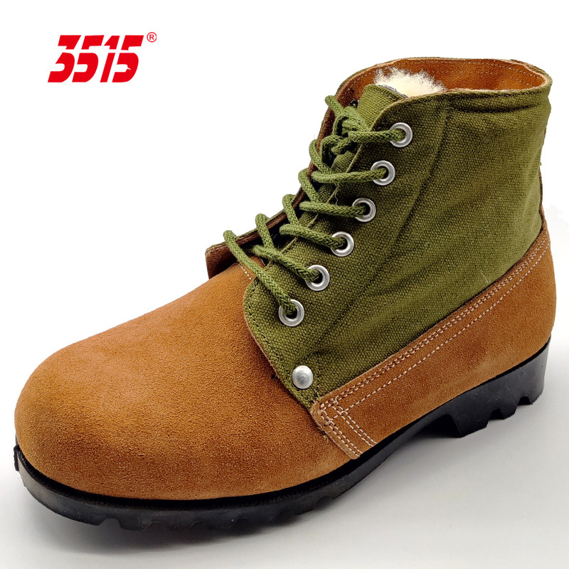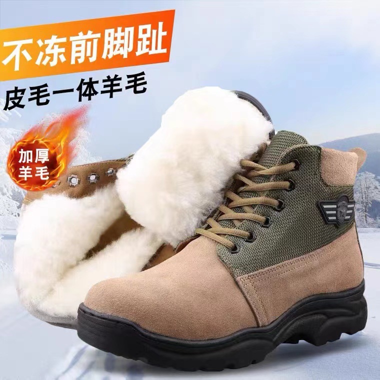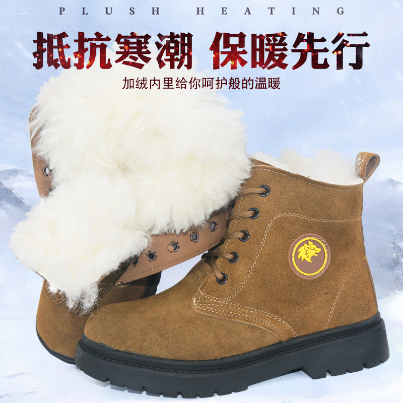 3515强人冬季加绒防寒保暖羊毛靴钢头防砸工地毛皮鞋老式大头棉鞋