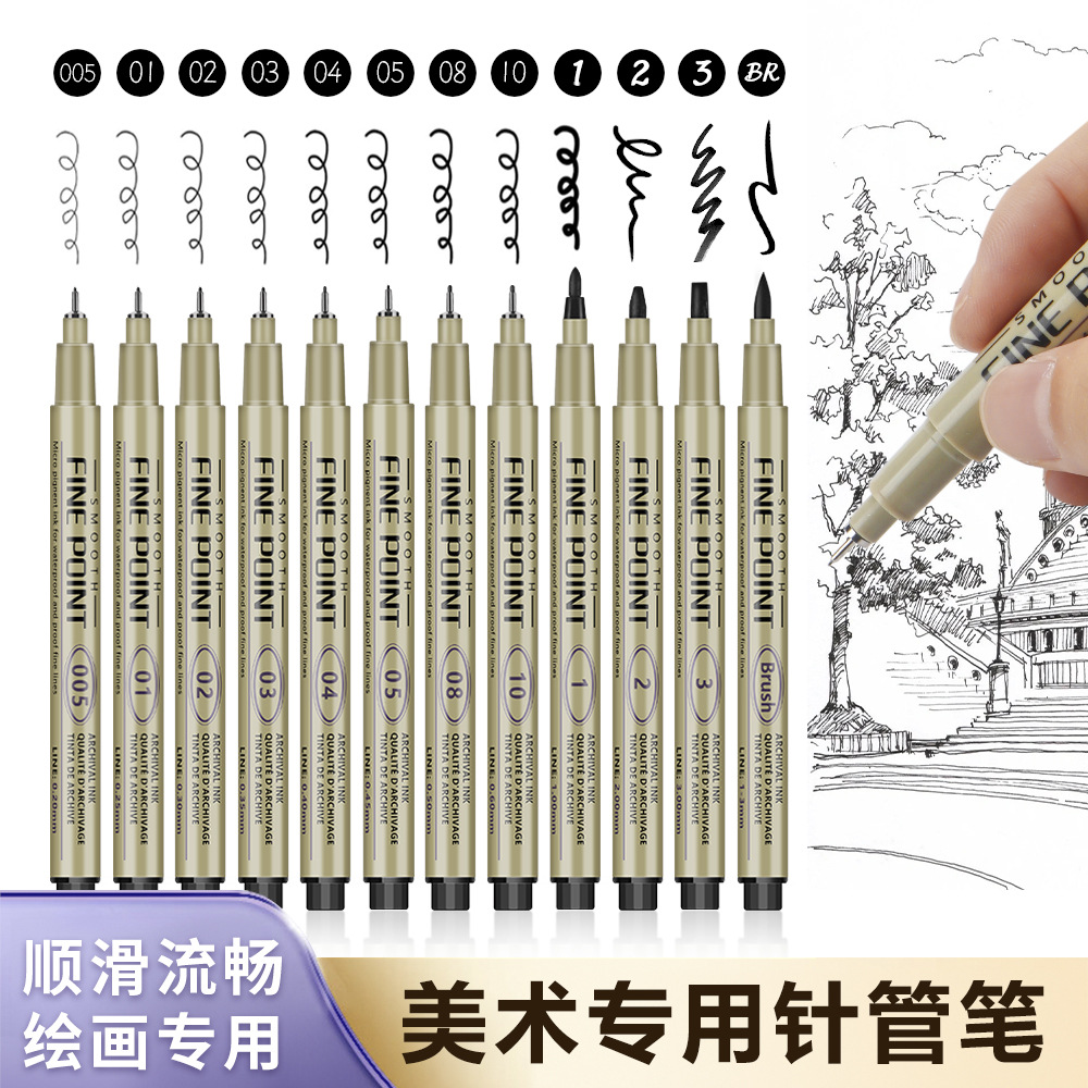 針管ペン12線幅絵画ペン防水美術建築画筆起爆線線軟頭針管線ペン