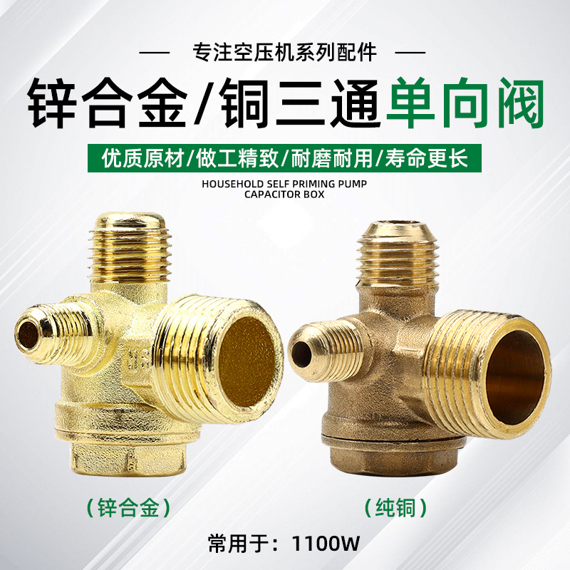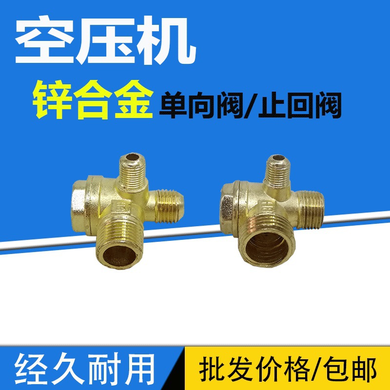 小型奥突斯オイルレス直在ピストン式エアコンプレッサ部品亜鉛合金三方チェックバルブ逆止弁