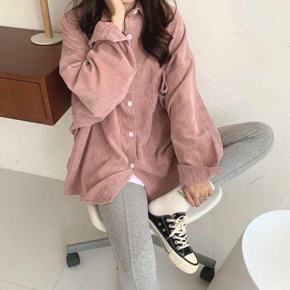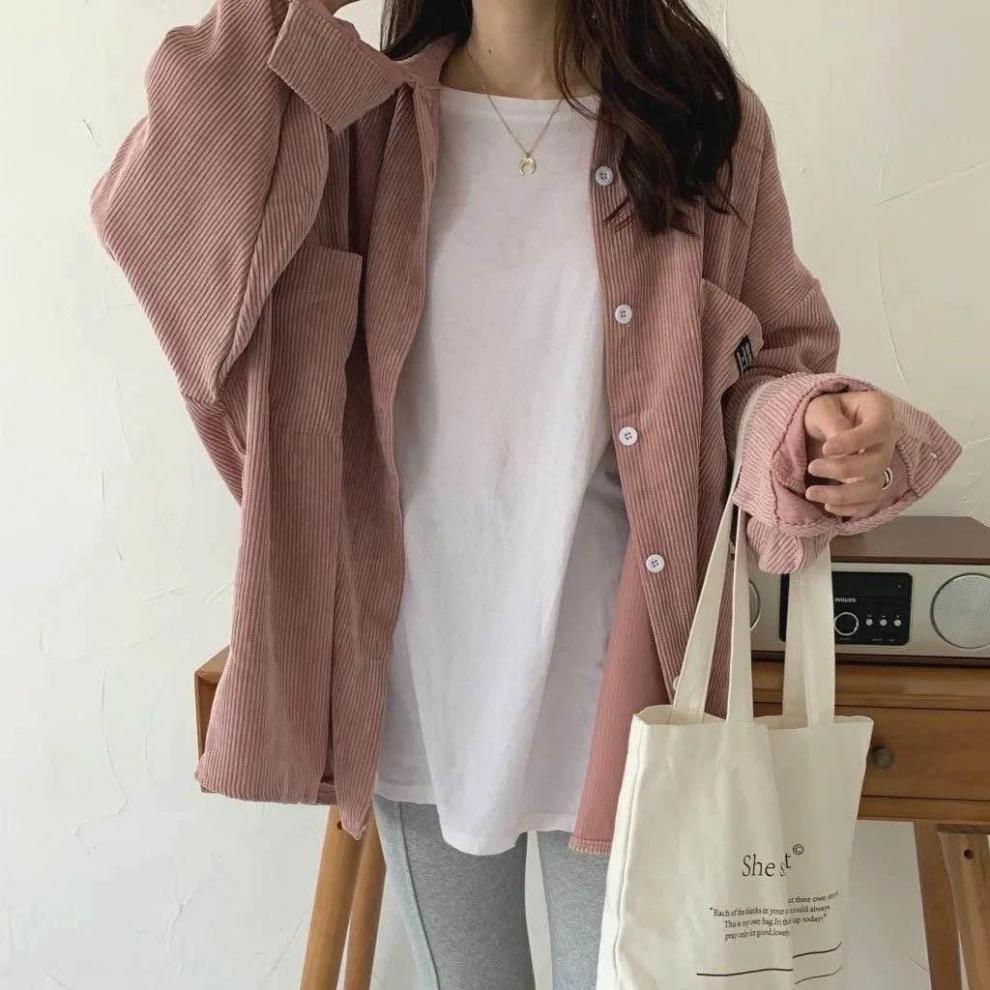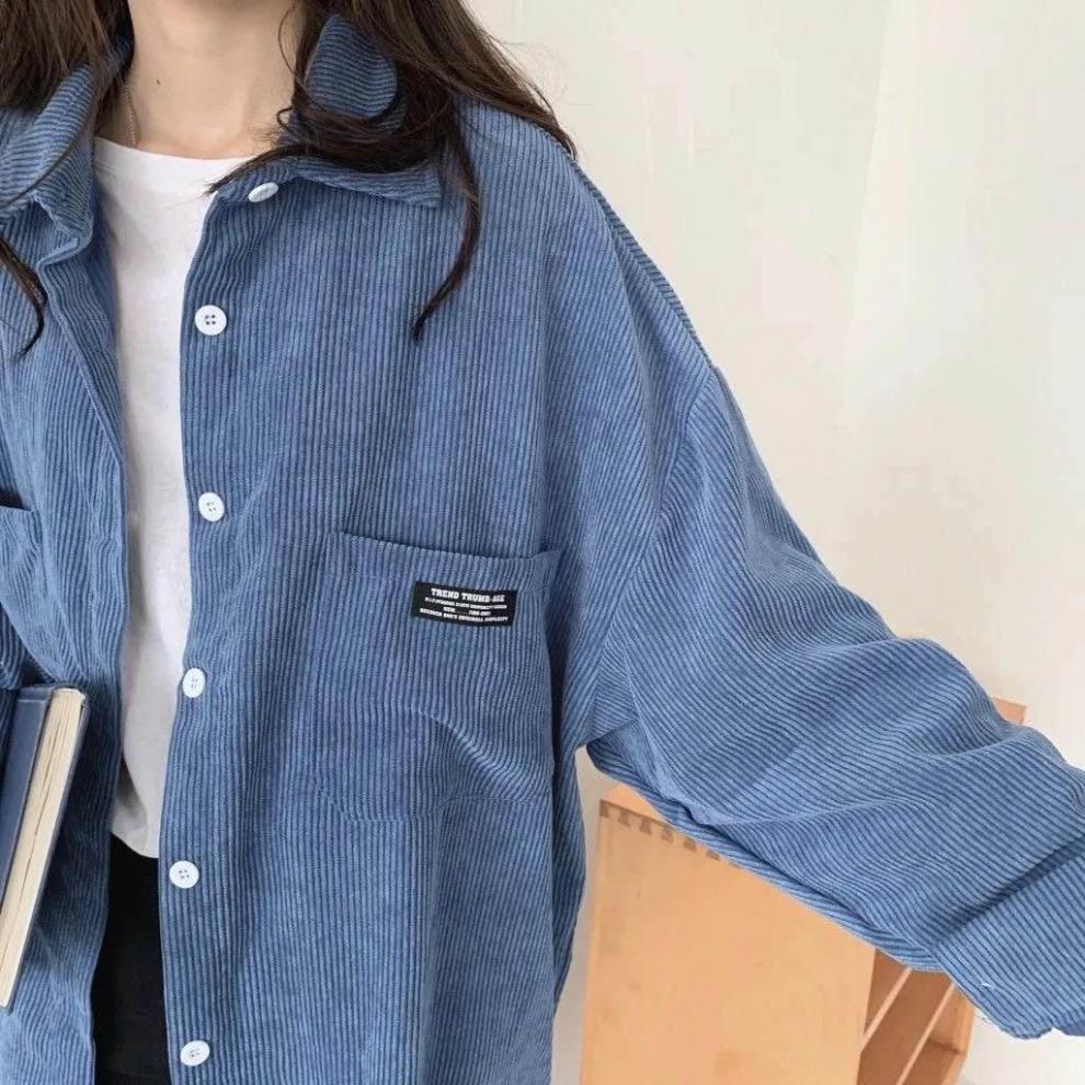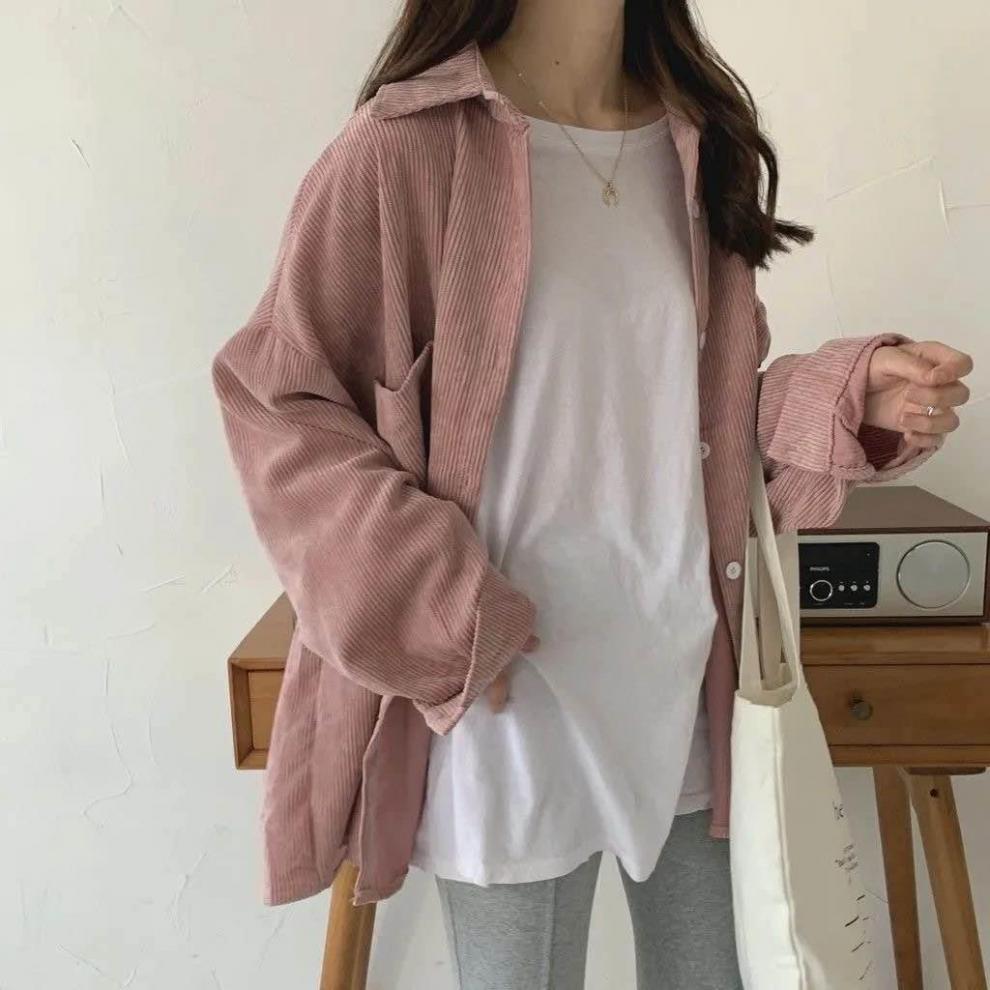 コーデュロイシャツレディース長袖2022秋新作デザイン感韓国風港味レトロゆるいシャツ薄いコート