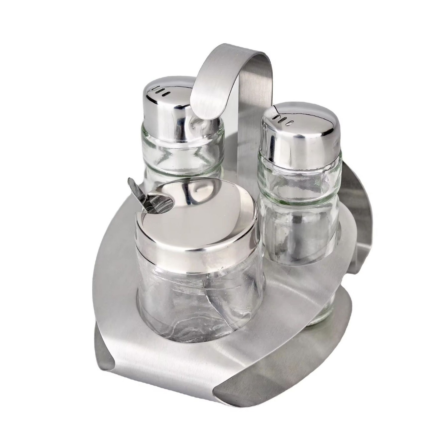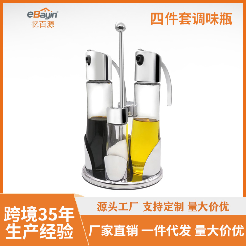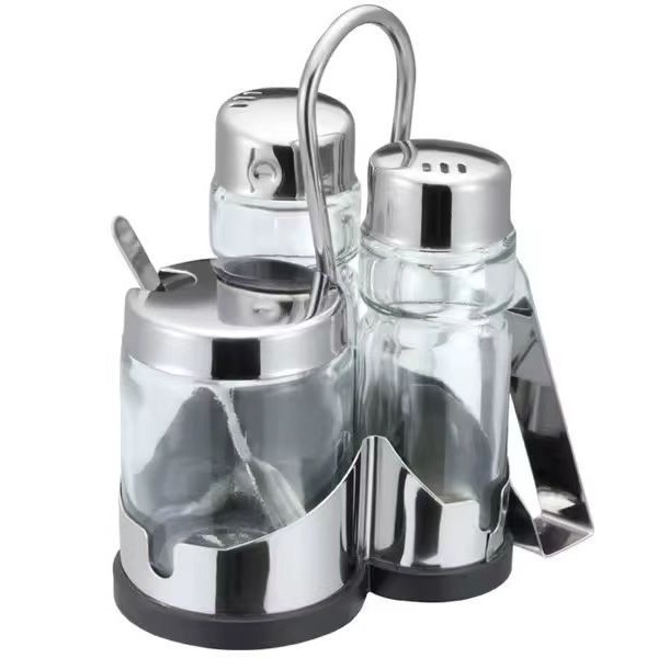 ステンレスガラス家庭用キッチン4点セット棚調味料瓶セットキッチンレストランホテル調味料缶セット