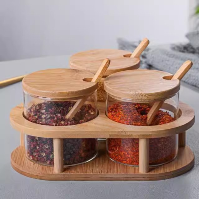 ホームキッチン調味料瓶セット竹蓋クリエイティブ調味料瓶高ホウケイ酸ガラス調味料ボックス 3 点セット