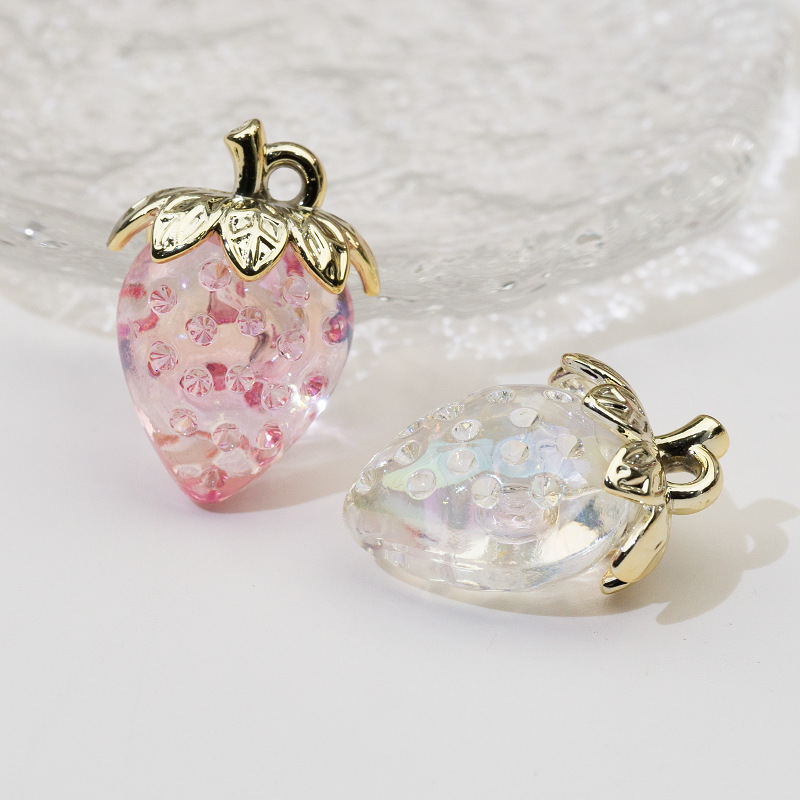 透明なイチゴのペンダントは、カラフルな果物のペンダントの携帯チェーンのキーホルダーの立体装飾材料diyアクセサリーの部品です。