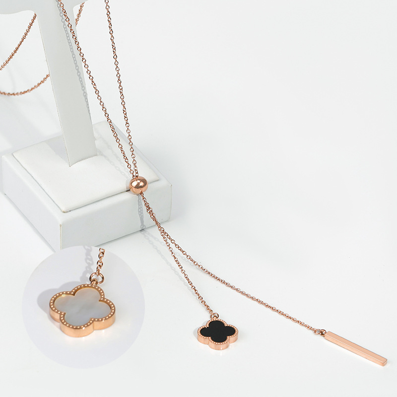 メーカー直販日韓秋冬両面四葉草フリンジネックレスネット赤同型高級百合セーターチェーン卸売り