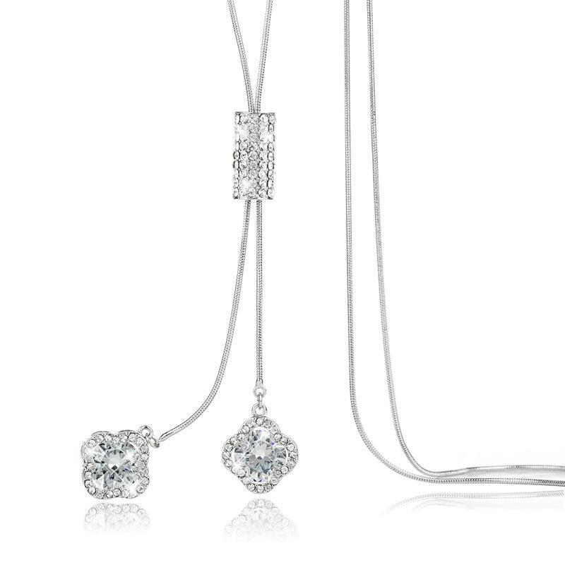 シンプルで清新なセーターチェーン四葉草水晶ペンダントの長いネックレスファッション