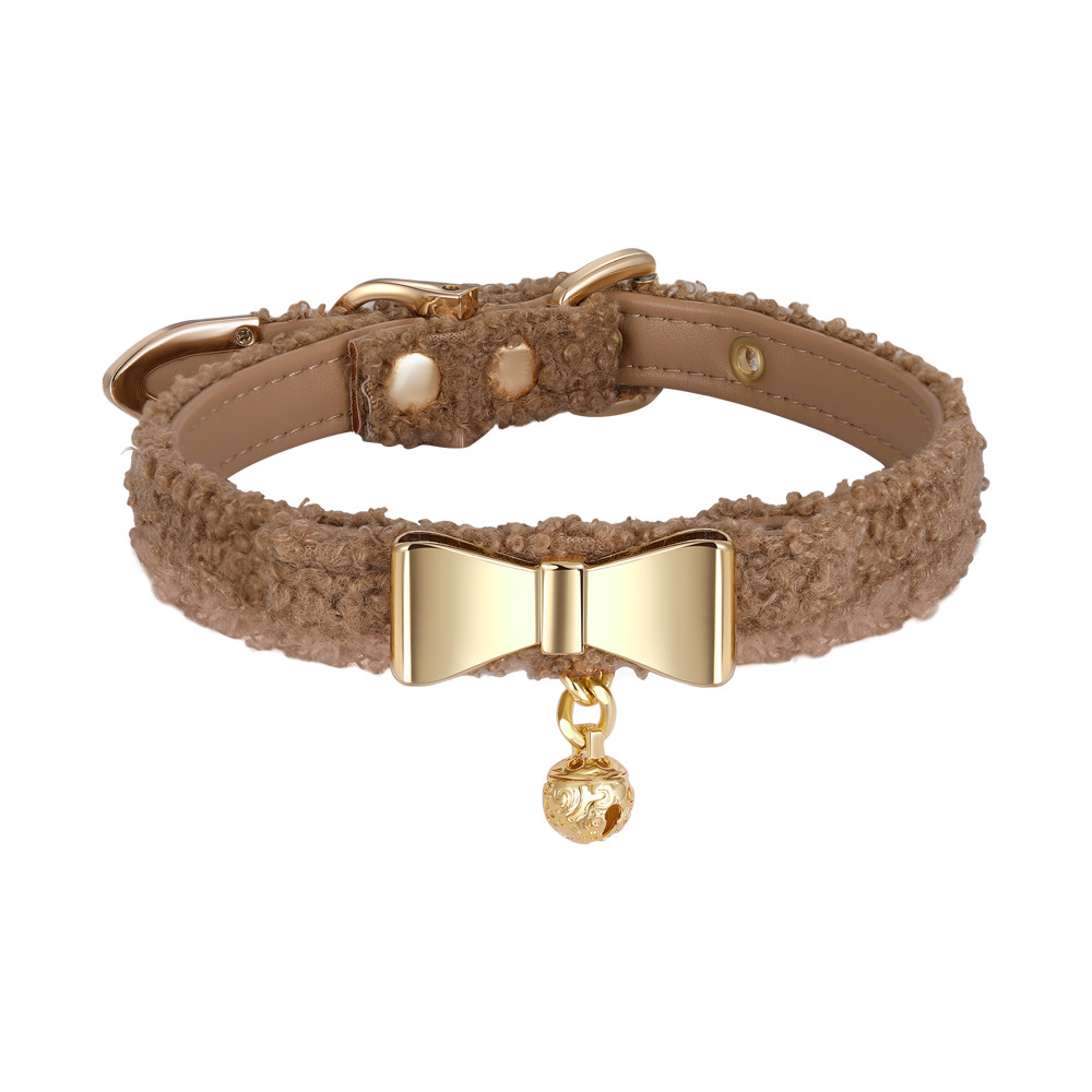趣味のぬいぐるみの首輪の徳風クリームはテディのベルベットのシリーズの蝶結びの鈴の項の夜店の趣味の首輪をまねます。