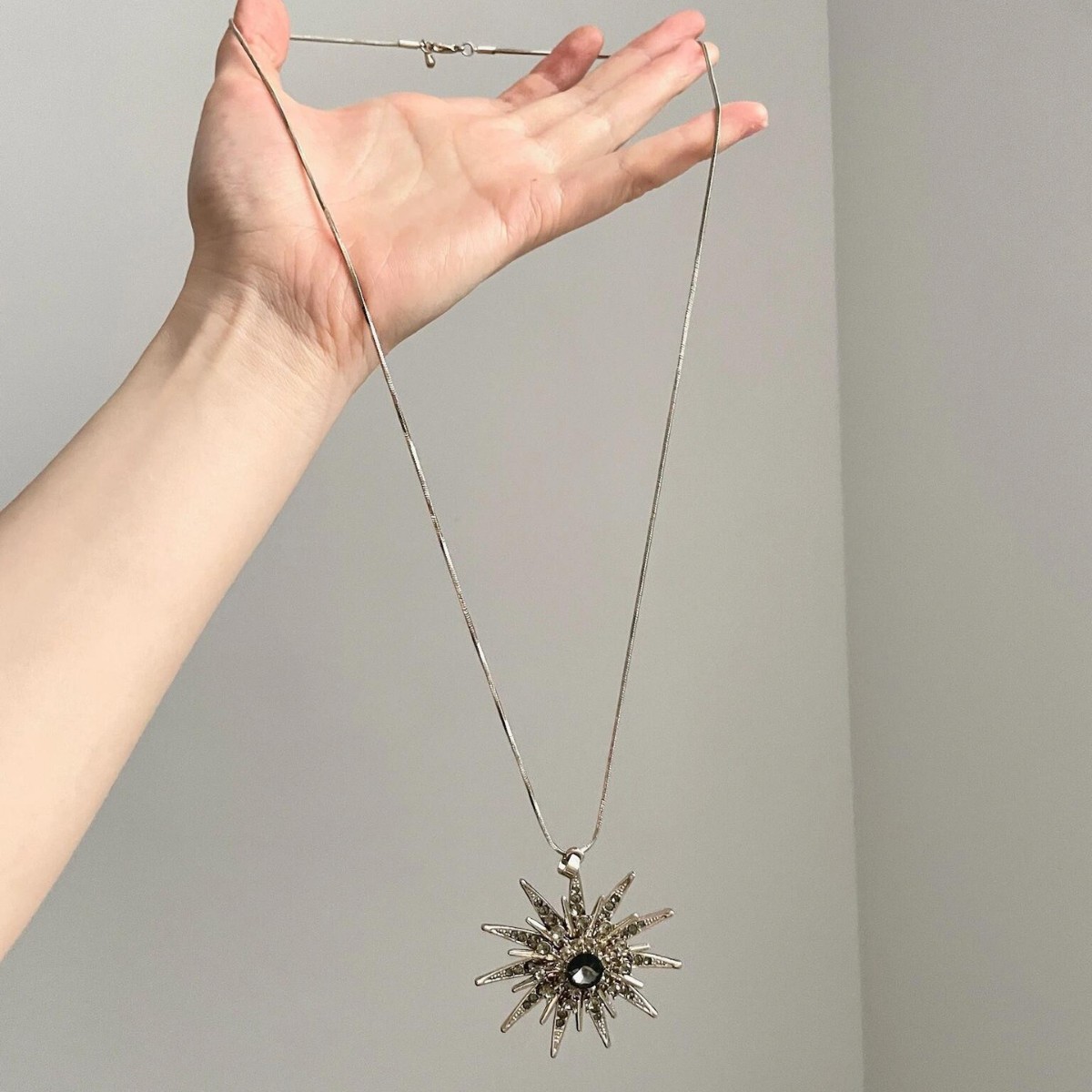 甜酷辣妹风个性满钻芒星太阳花项链女轻奢复古小众长款毛衣链配饰
