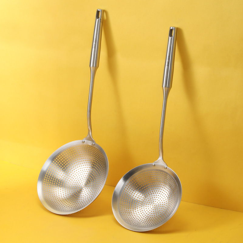 一体型全鋼ザル 304 ステンレス鋼食品グレードキッチン揚げザルロングハンドル餃子麺スプーンパンチングザル