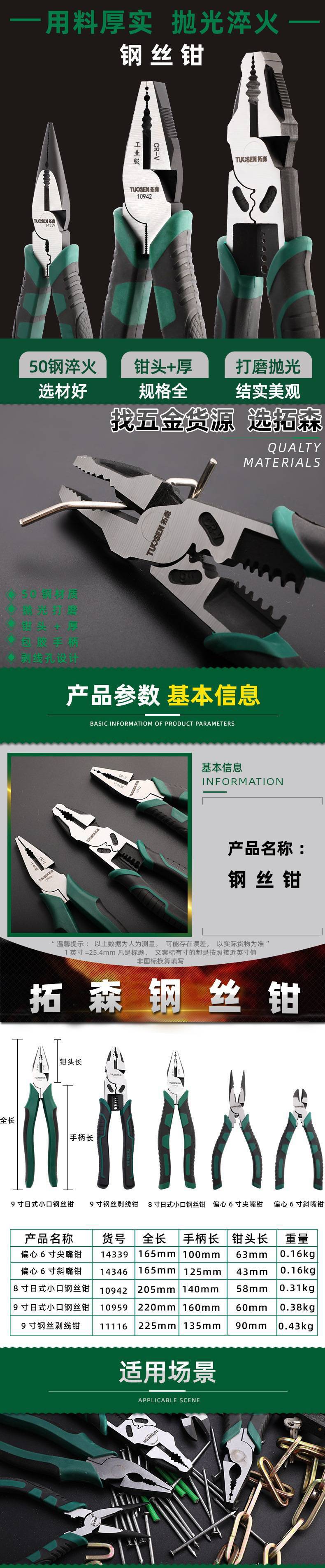 拓森多機能圧線剥線省力平口鉗子8インチ9インチバイス手動ワイヤー鉗子