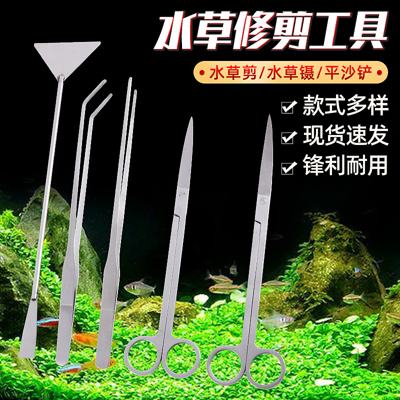 水草剪定ツールセット水槽造景直曲ハサミピンセット藻刀エルボ波平頭シャベル