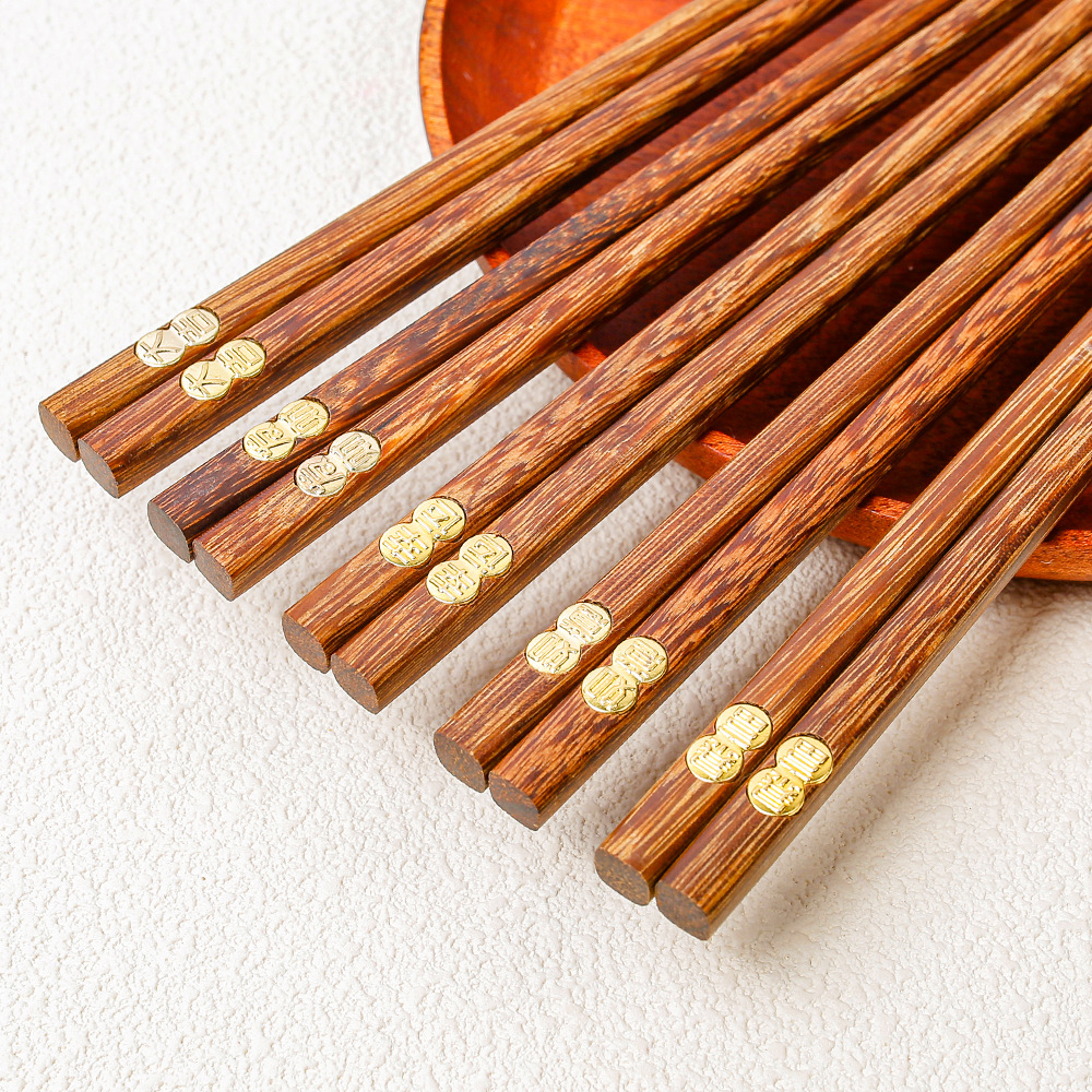 【5双包郵便】家庭用実木箸紅檀鶏翅木福字箸ソース簡易包装卸売り