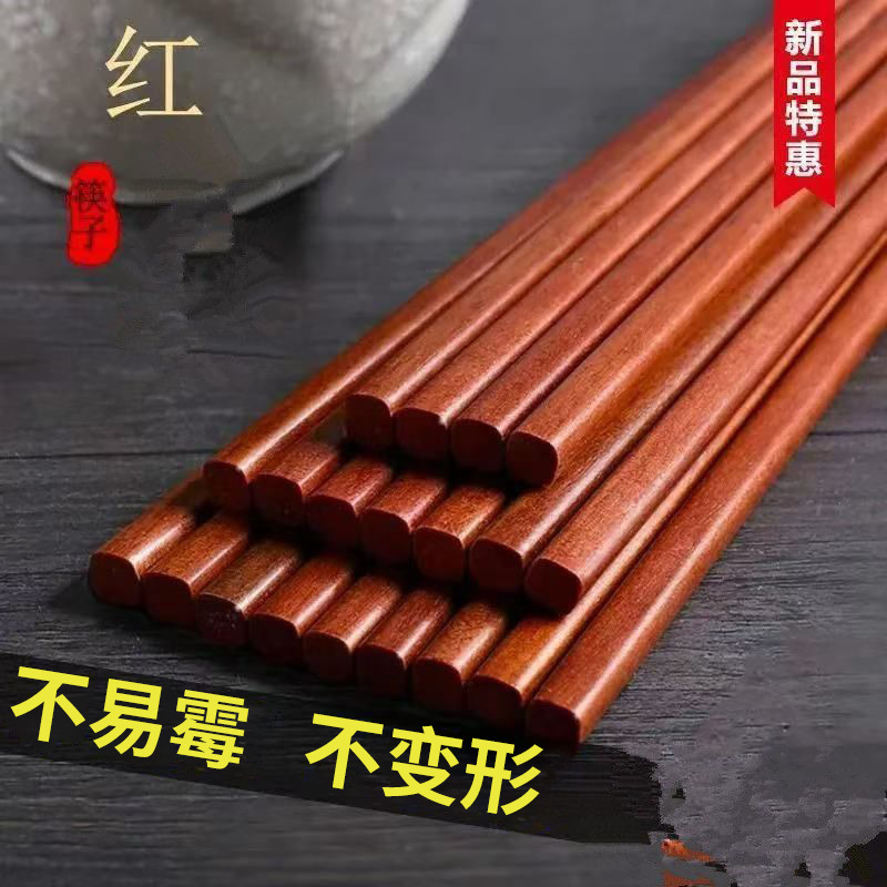 10双红铁木筷子批发家用实木筷红木餐厅商用防滑商用快子定制刻字