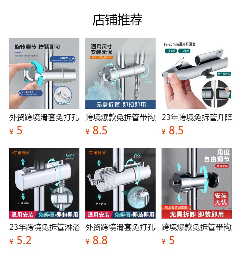 外国貿易クロスボーダー分解不要のチューブフック付きスライドスリーブパンチフリーシャワーブラケットミッドフォークシャワーヘッドホルダーユニバーサル