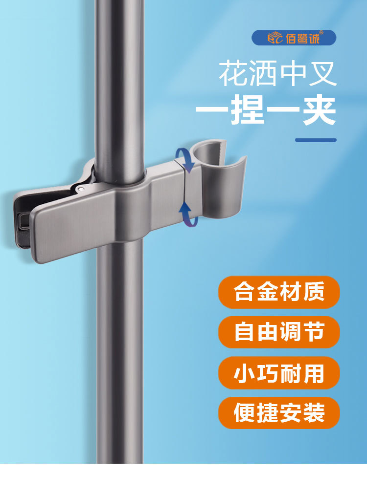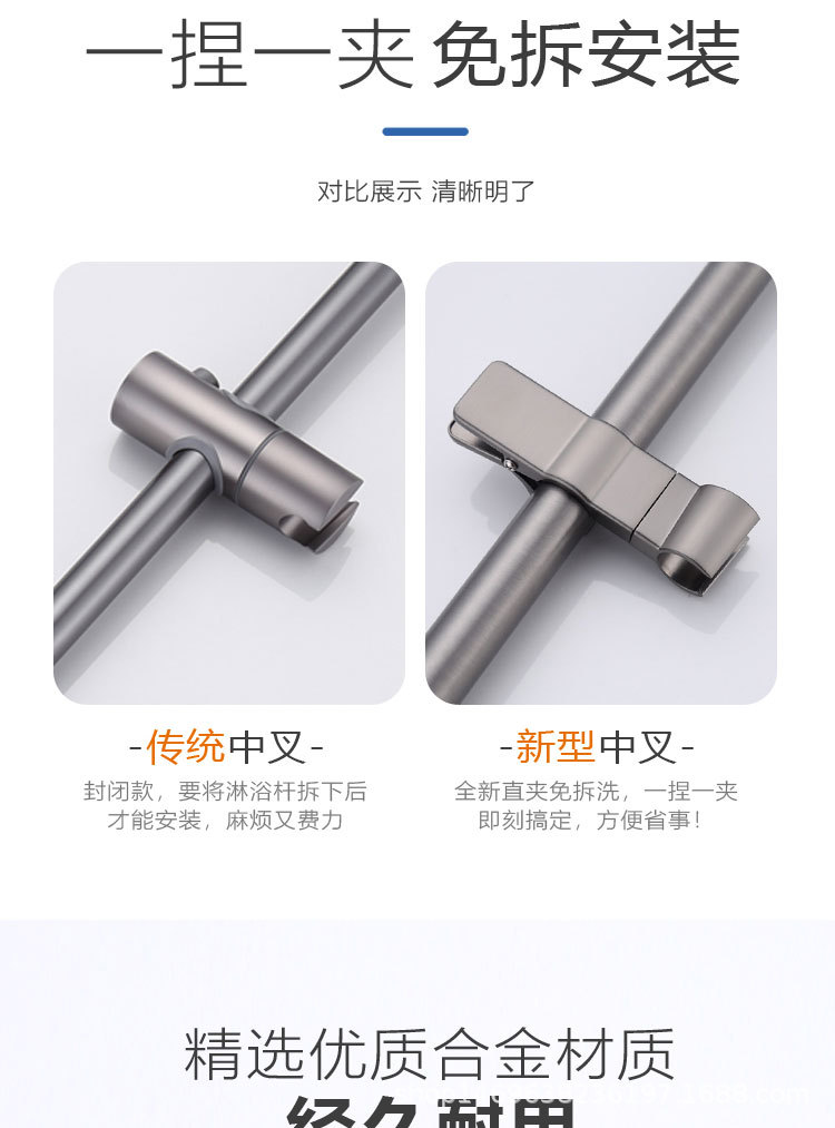 外贸跨境滑套免打孔花洒支架可拆卸升降杆中叉沐浴喷头固定座通用