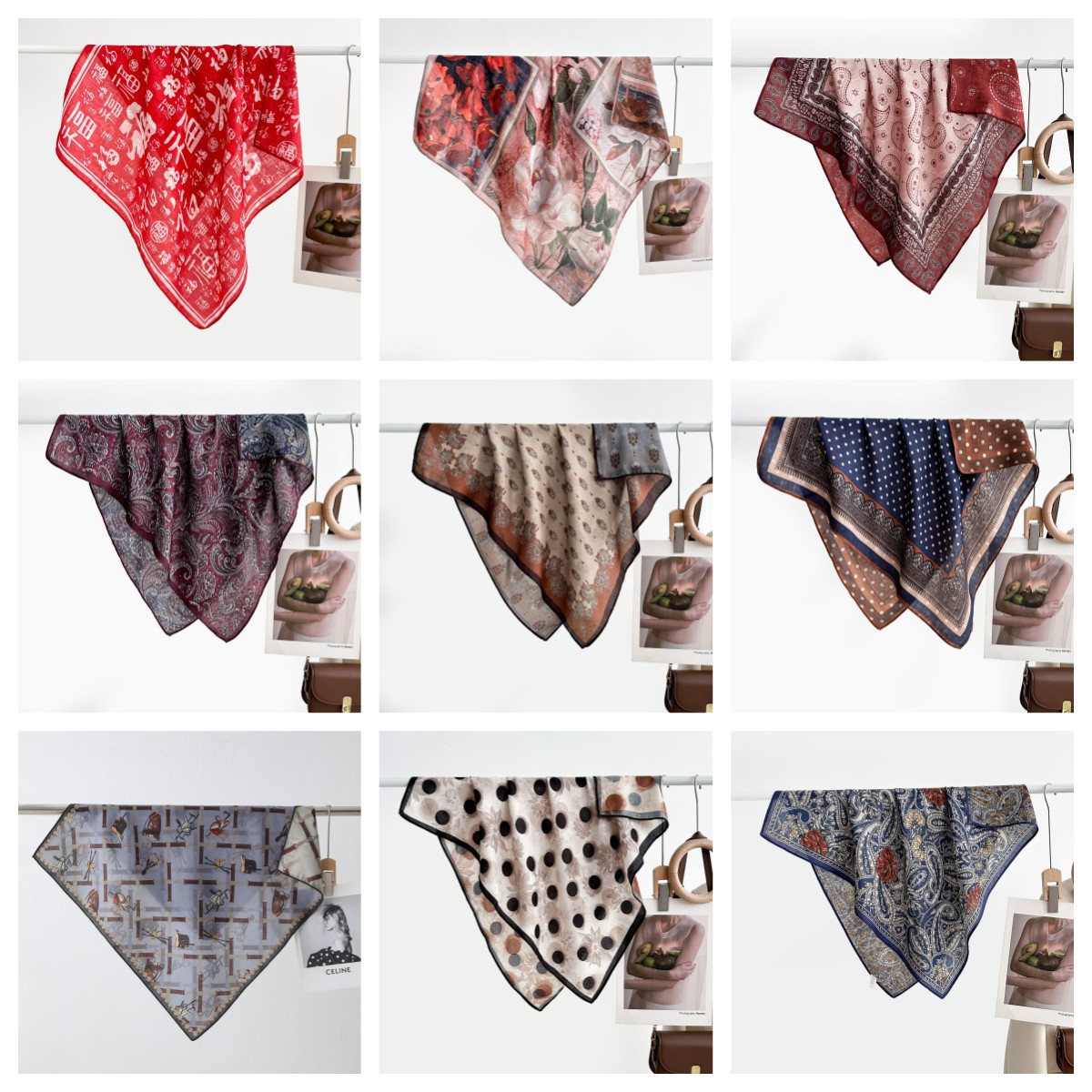 2025春夏の新型シルクサテンプリントのロングタオルは、シルクサテンのレトロなマントの気質を模倣して旅行します。