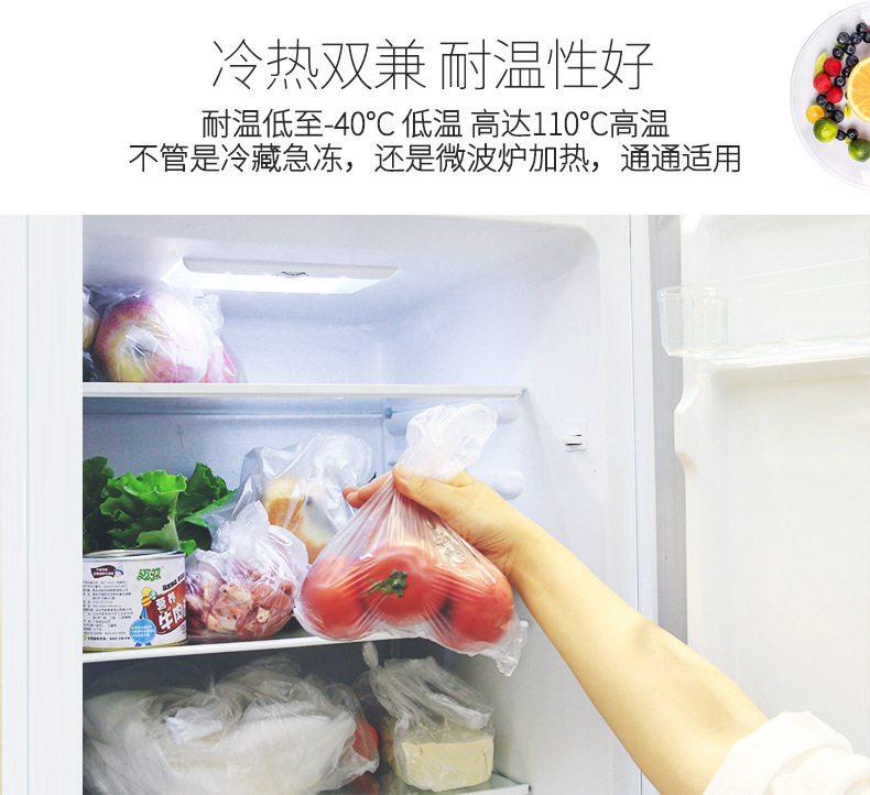 家庭用厚手の使い捨て食品保存袋、ロール式果物と野菜の包装袋、平口保存袋