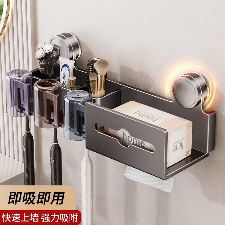 浴室置物架牙刷牙杯洗脸巾纸巾多功能洗漱台卫生间免打孔收纳架子
