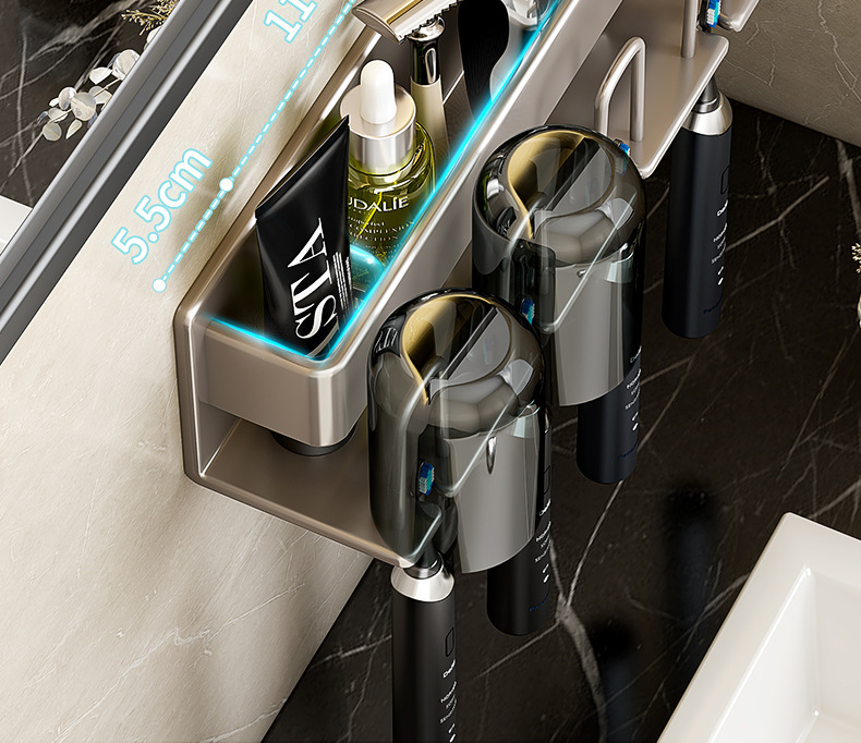 銃の灰色の歯ブラシの置物棚のトイレの穴を開けないでうがいコップの歯のコップの壁掛け式の収納棚の電動の歯ブラシの棚