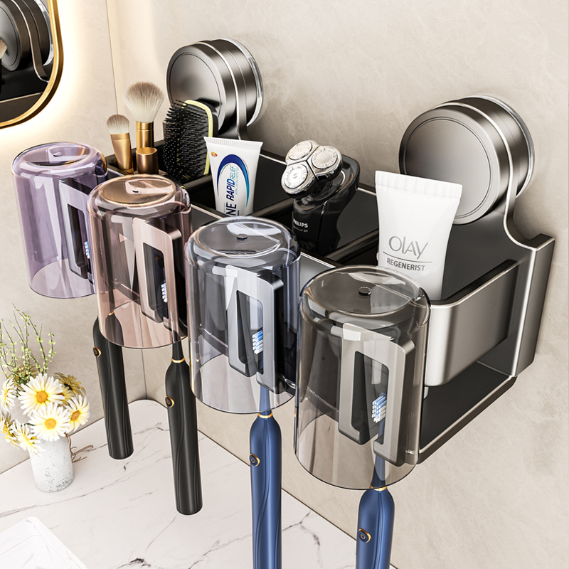 吸盤歯ブラシホルダートイレ穴なしうがいコップ電動歯ブラシシリンダー壁掛け式歯磨き粉ラック