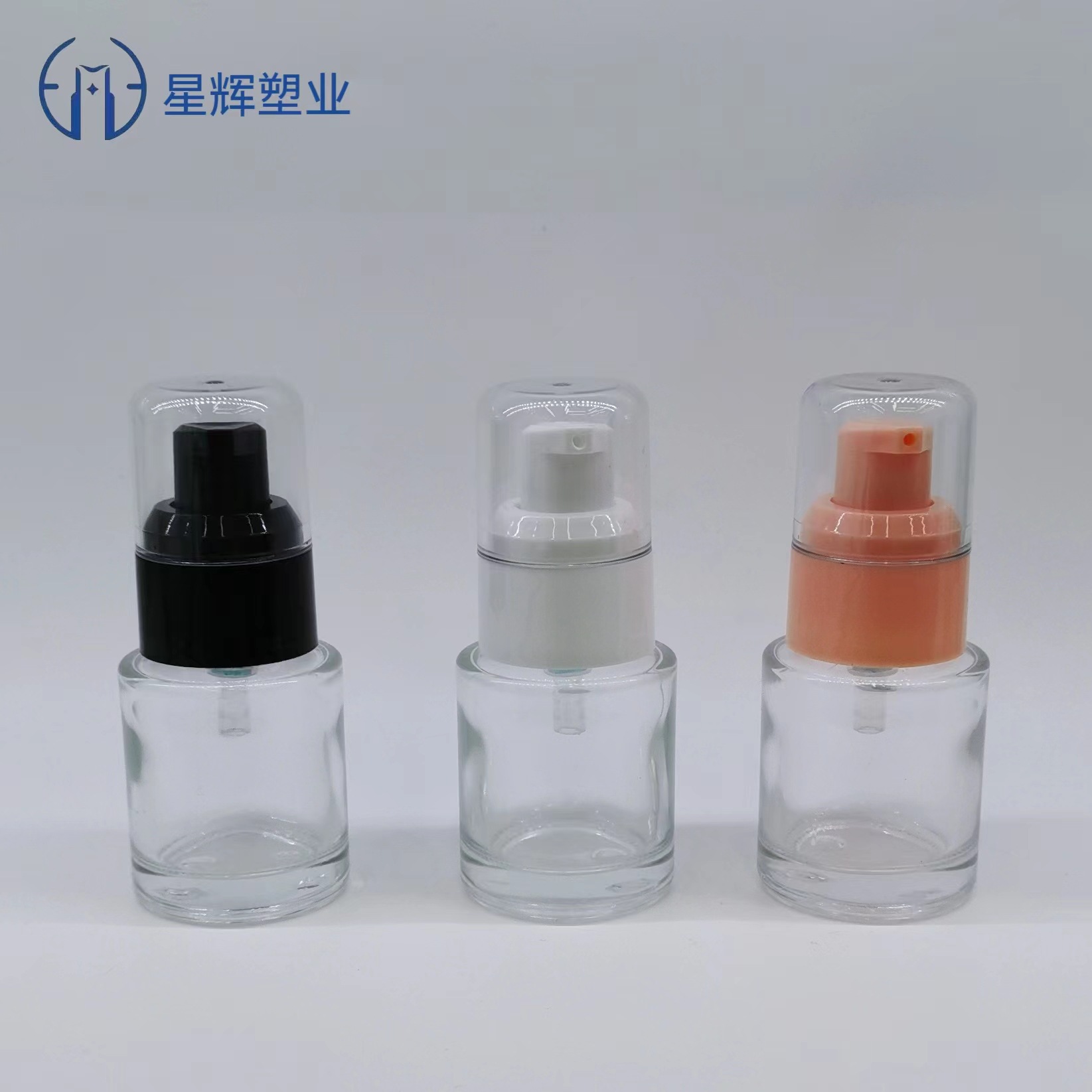 メーカー直販18歯ファンデーションポンプヘッドと円形カバー押圧式ポンプヘッドのファンデーションボトル