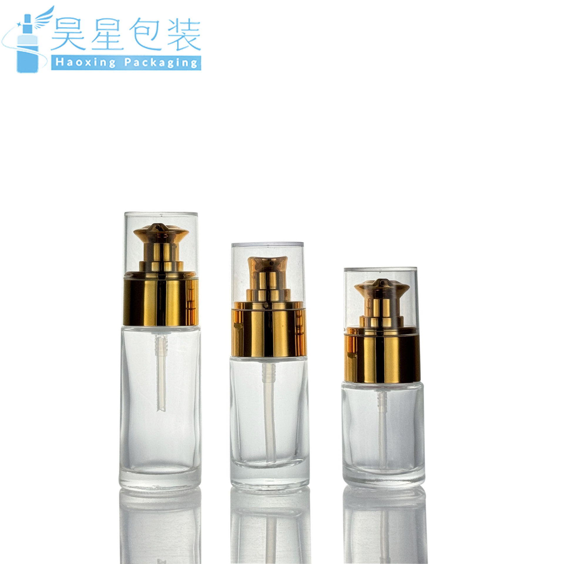 源メーカー18歯押圧式ポンプヘッド + 円形カバーと30mlのファンデーションボトルのローションボトル