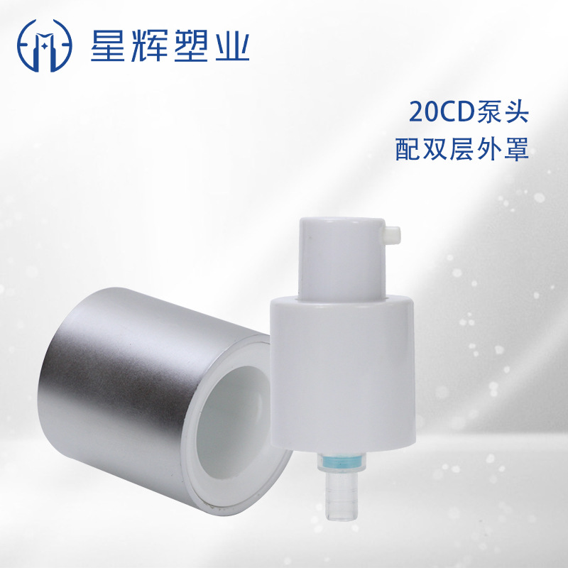现货直供外置20牙UV按压乳液泵头粉底液泵头pp配防尘透明AS全罩