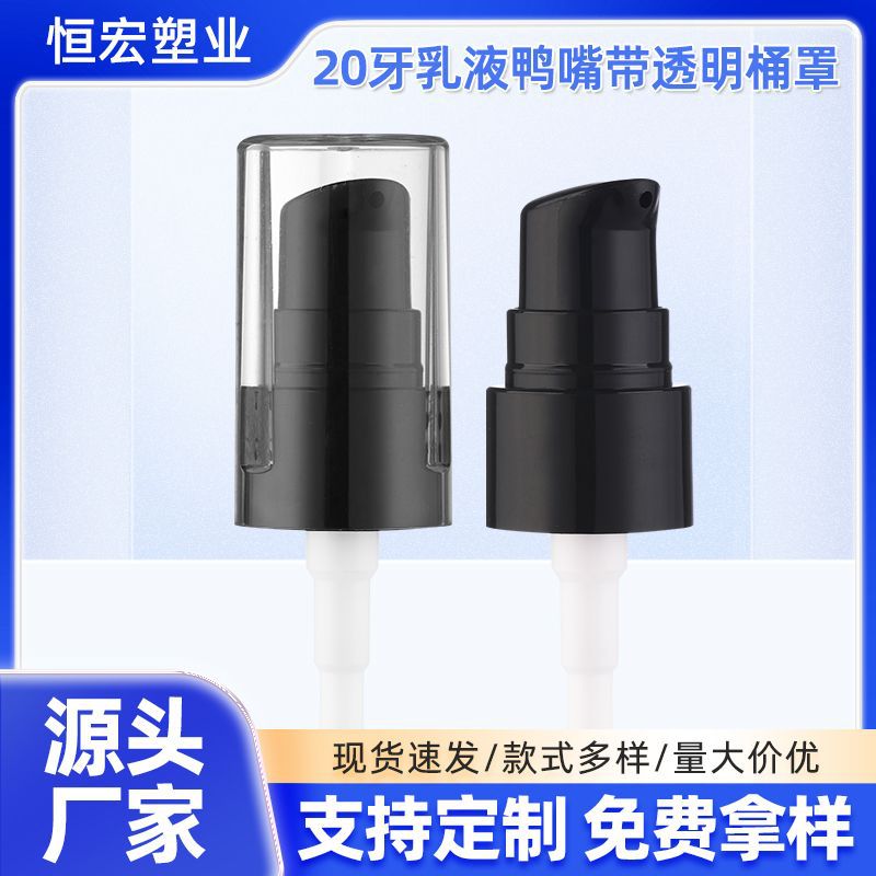 20牙泵头乳液鸭嘴带透明桶罩化妆品包材批发粉底液ABS按压泵头